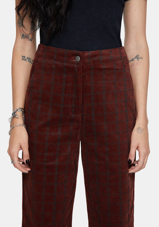 Terracotta Cotton Cord Check Straight Leg Crop Trousers