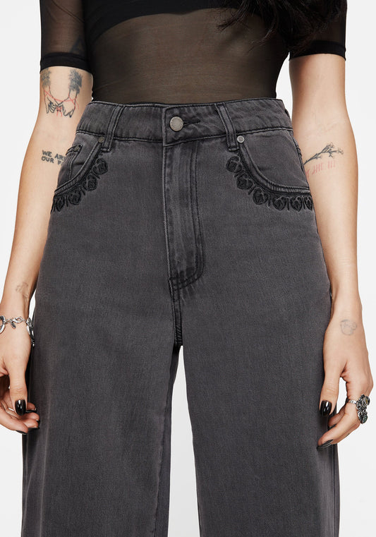 Nara Wide Leg Distressed Gothic Embroidery Jeans