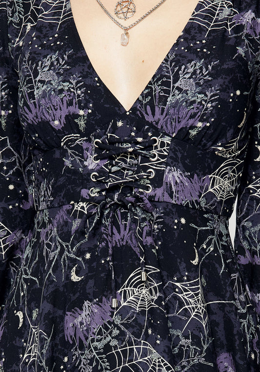 Hawthorn Flute Sleeve Lace Up Mini Dress