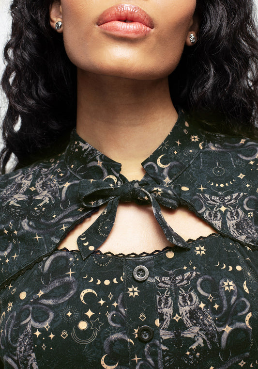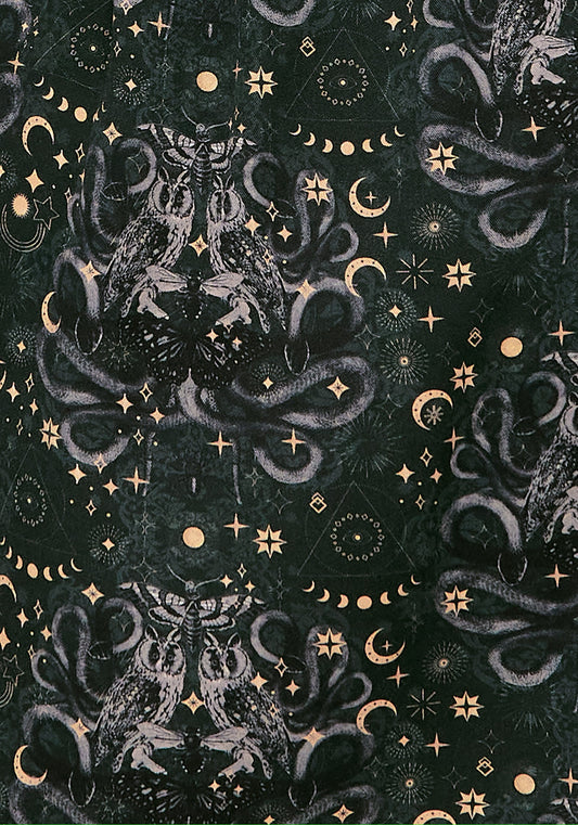 Zodiac Foil Print Velour Flute Sleeve Maxi Gown