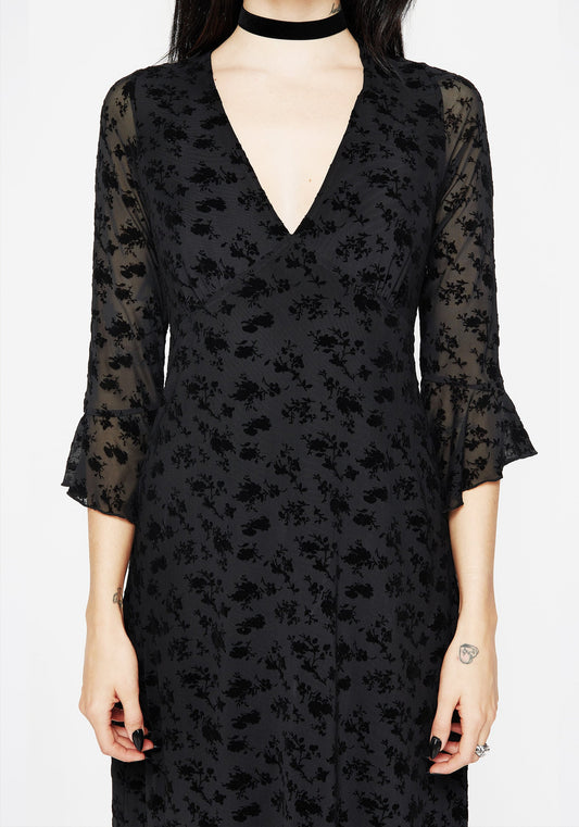 Rosaleigh Flock Velour Mesh Flare Sleeve Mini Dress