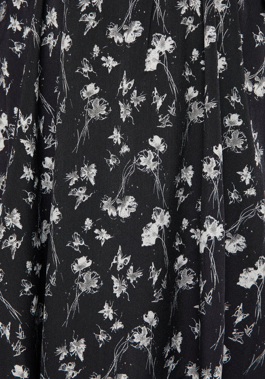 Dragonfly Floral Print Chiffon Handkerchief Hem Dress