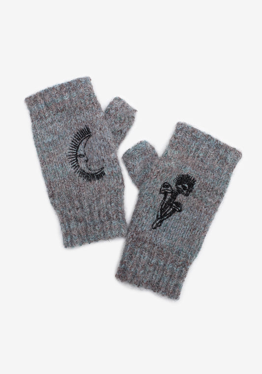 Styx Moth Embroidered Acid Wash Cable Knit Jumper