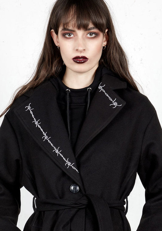 Gorgon Bouclé Oversized Coat with Snake Brooch - Black