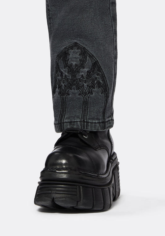 Noir Cotton Gothic Arch Cropped Cable Knit Jumper