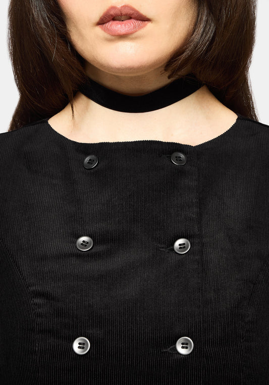 Gloom Lace Up Front Corset Detail Pinstripe Midi Dress