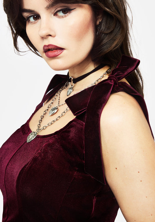 Lisette Velour Tie Strap Corset Top - Red