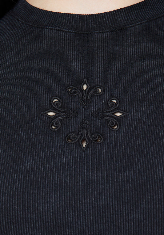 Christina Cotton Cut Out Detail Washed T-Shirt