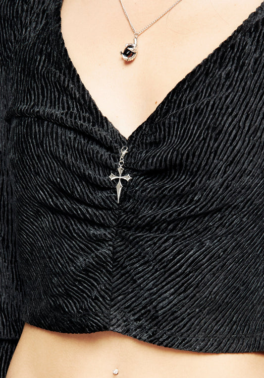Dysnomia Ribbed Velvet Crop Top