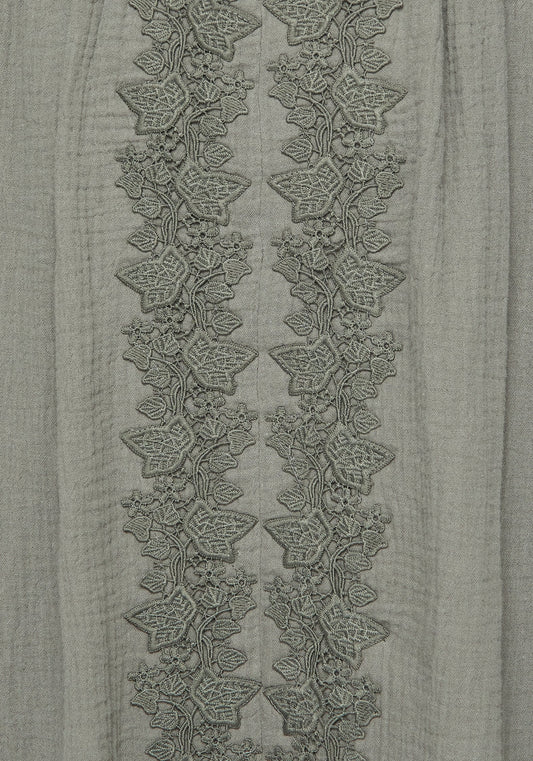 Foliate Linen-Blend Embroidered Button Up Midi Dress - Green