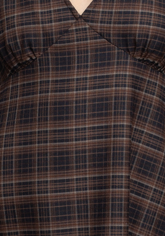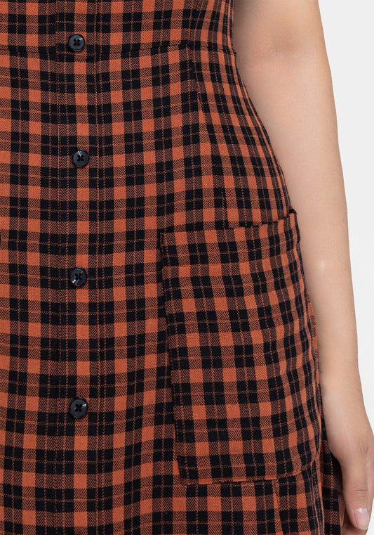 Terra Check Button Up Midaxi Dress - Orange