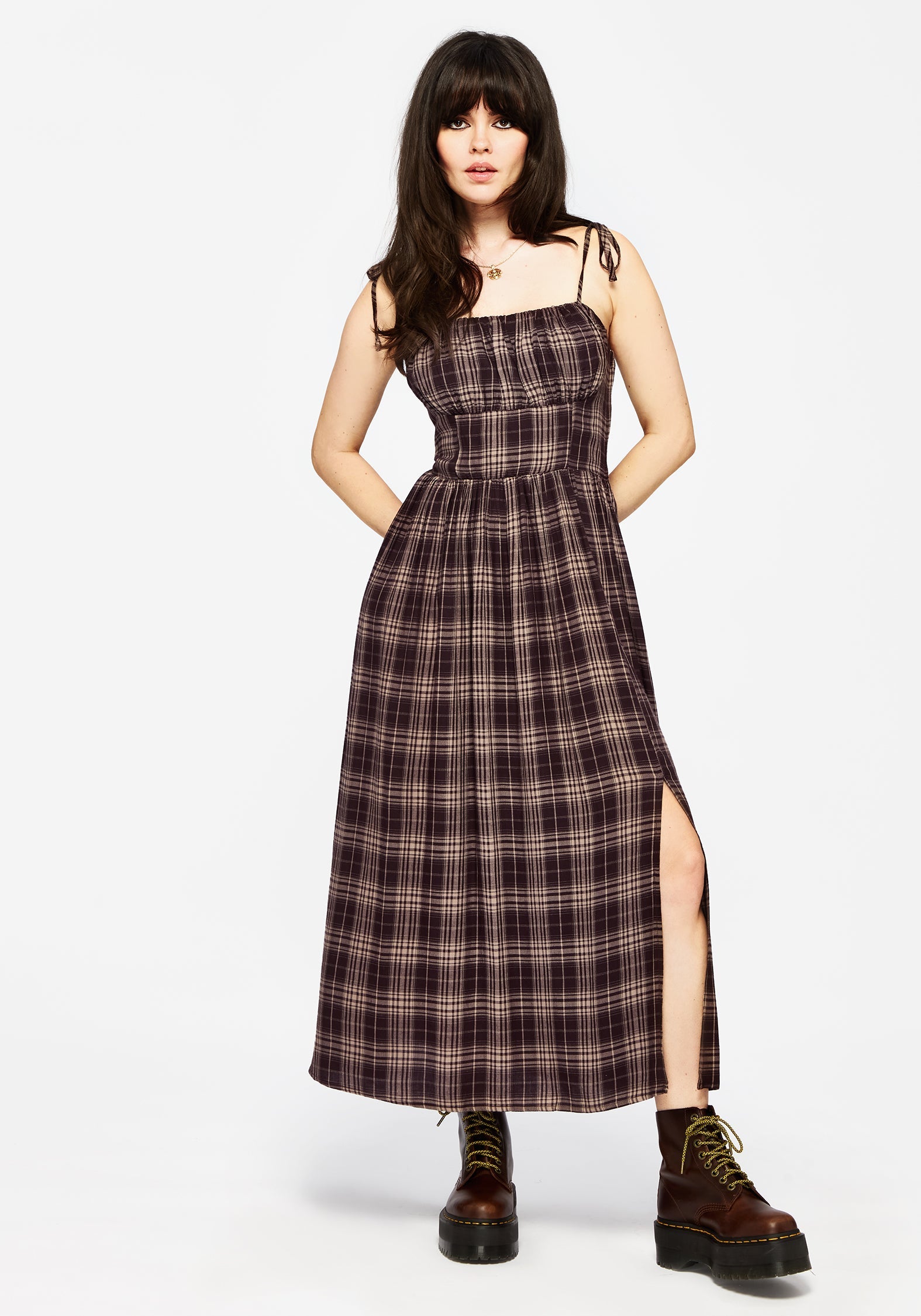 - Brown Check Cami Midi Dress
