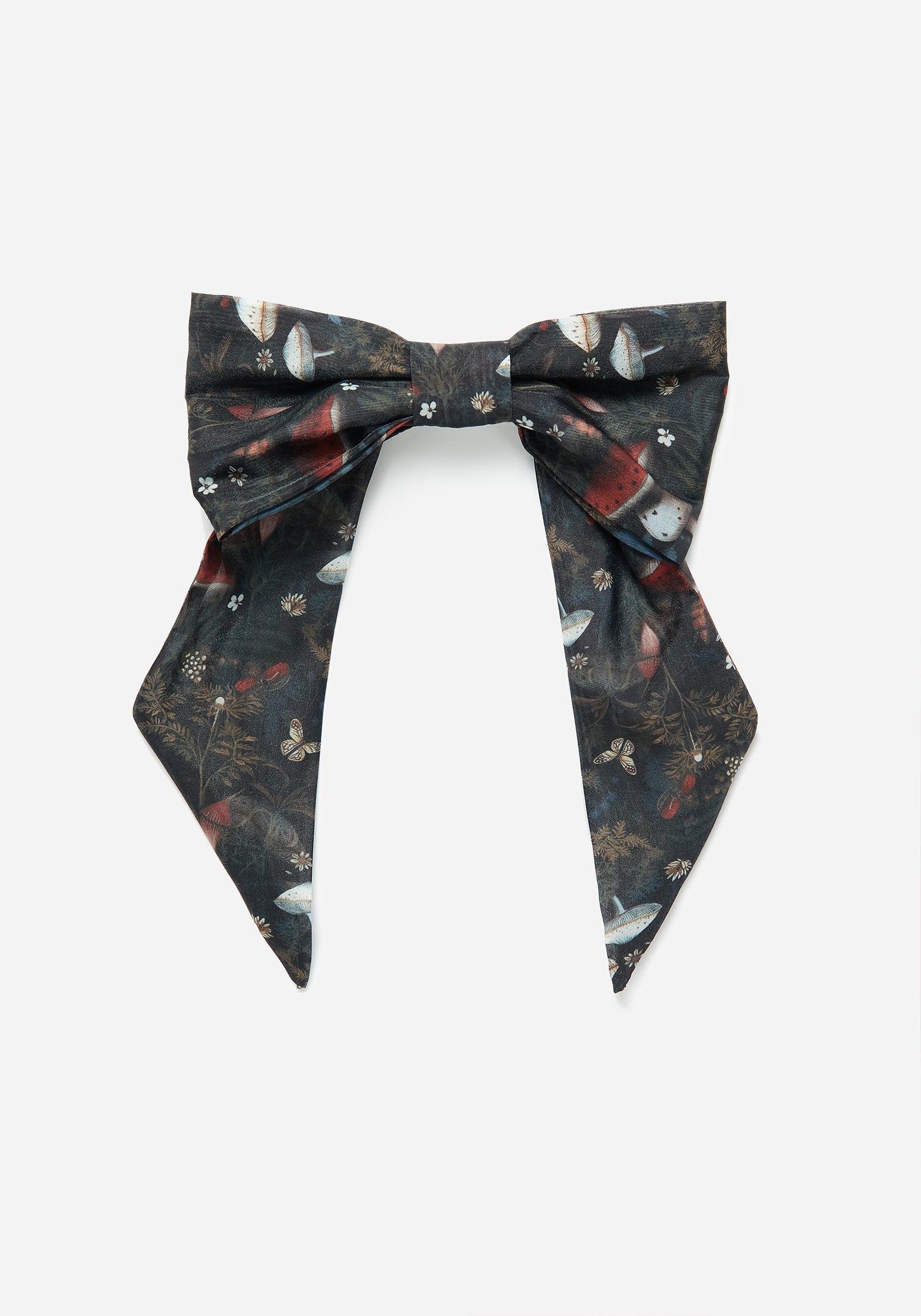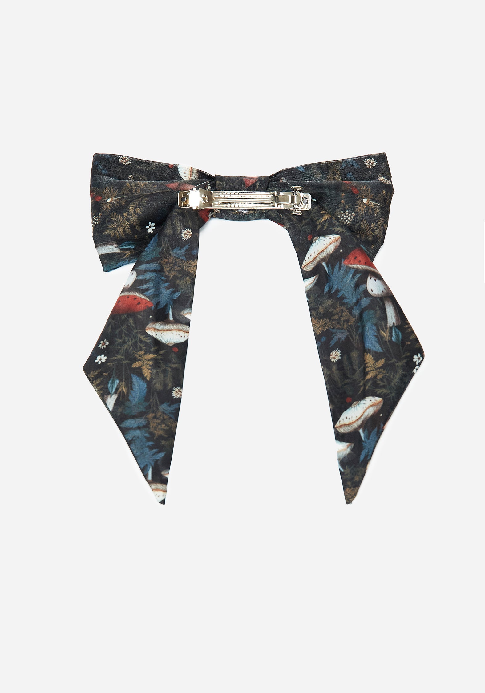 - Black fly agaric mushroom print organza hair bow barrette clip
