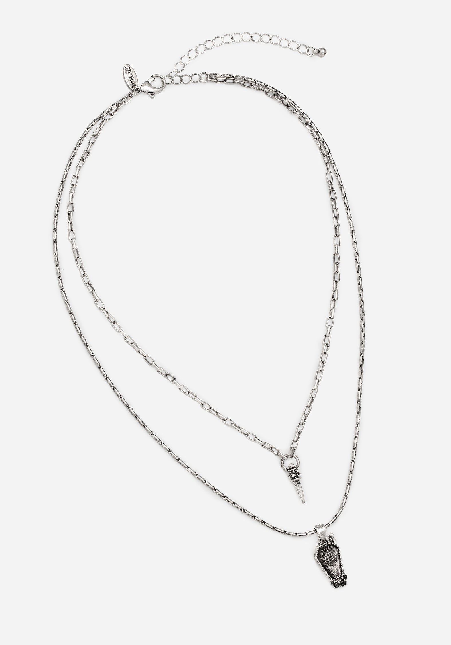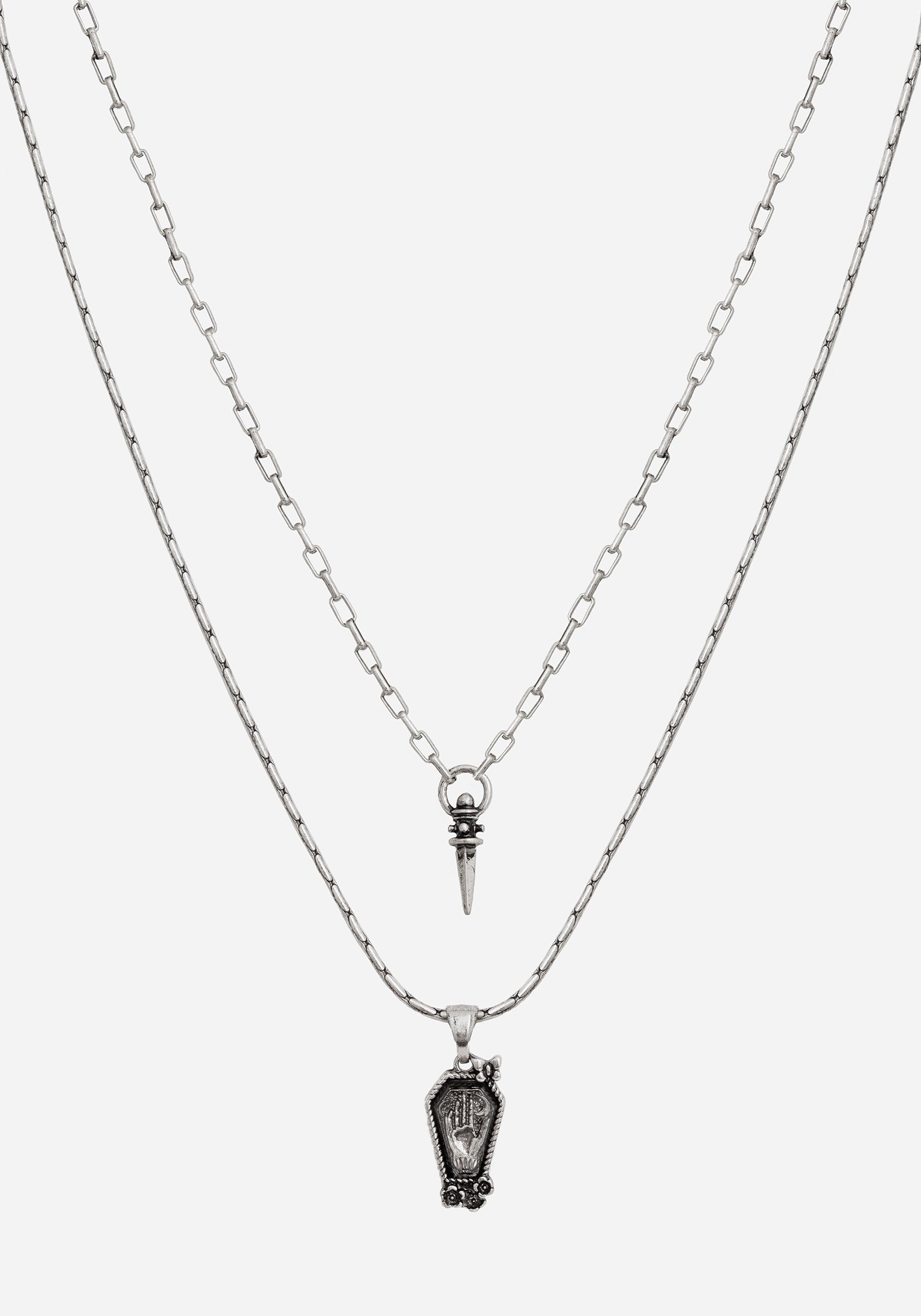 - Silver Coffin & Dagger Charm Double Layered Necklace