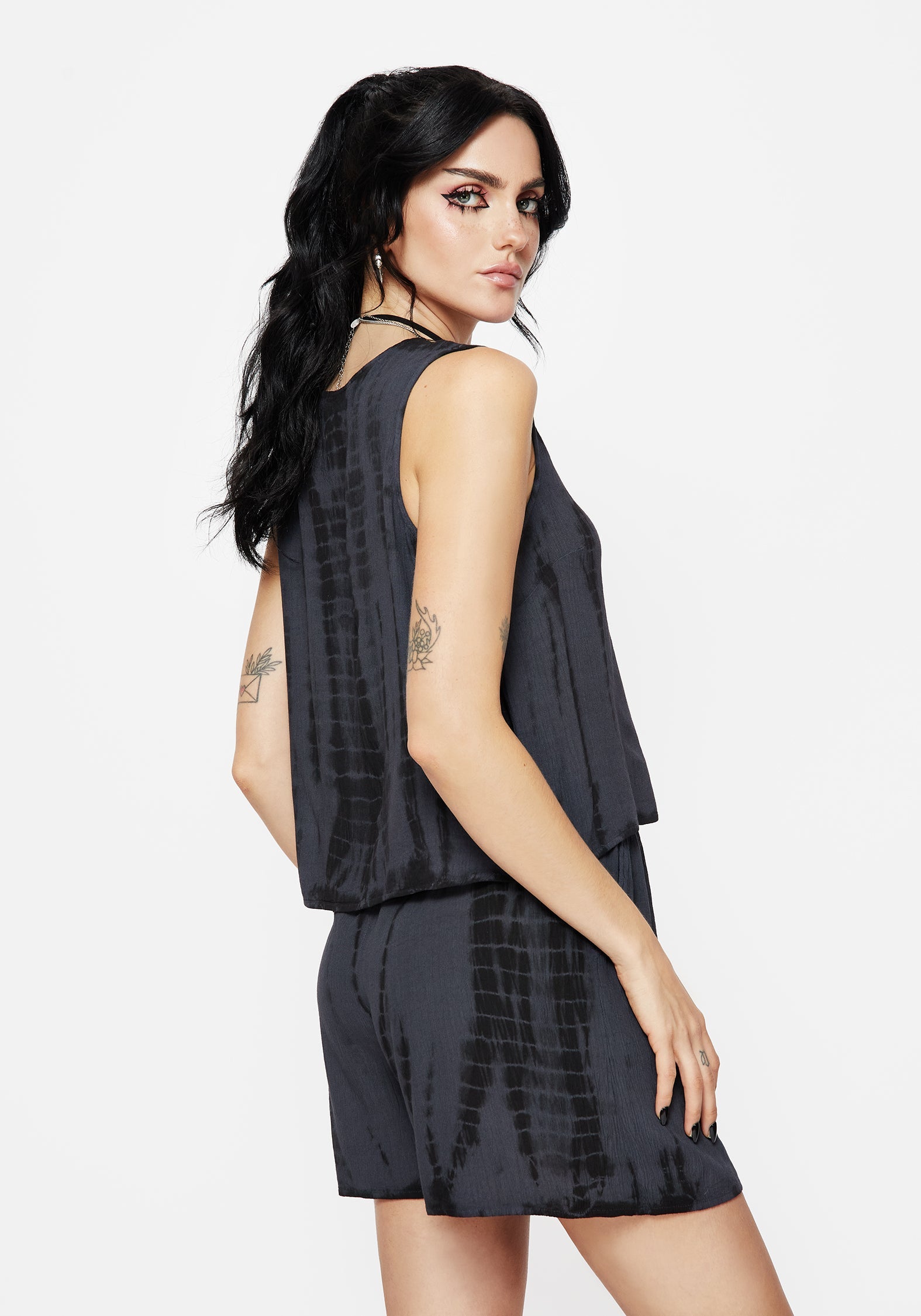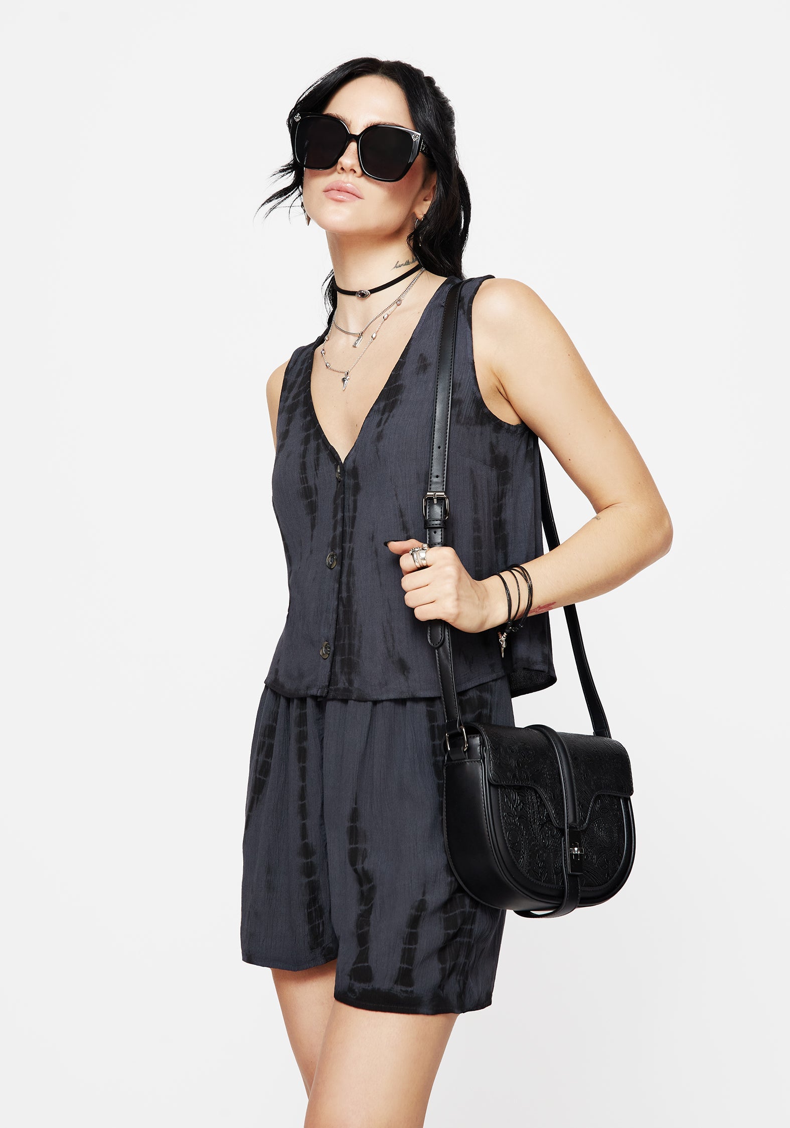 - Navy Blue & Black Tie Dye Button Up Waistcoat Top