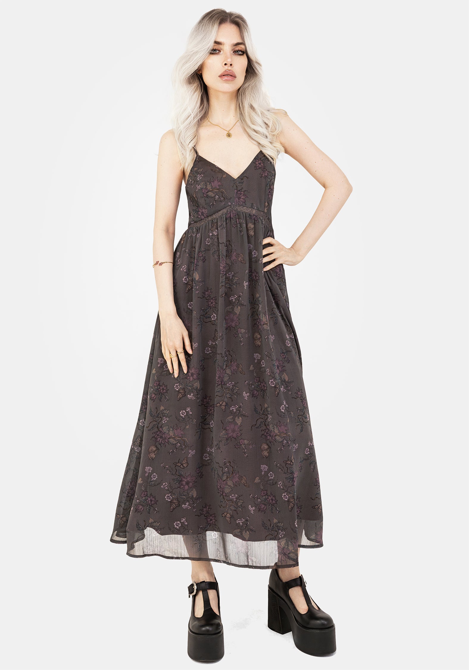 Arnora Chiffon Lace Insert Cami Midaxi Dress