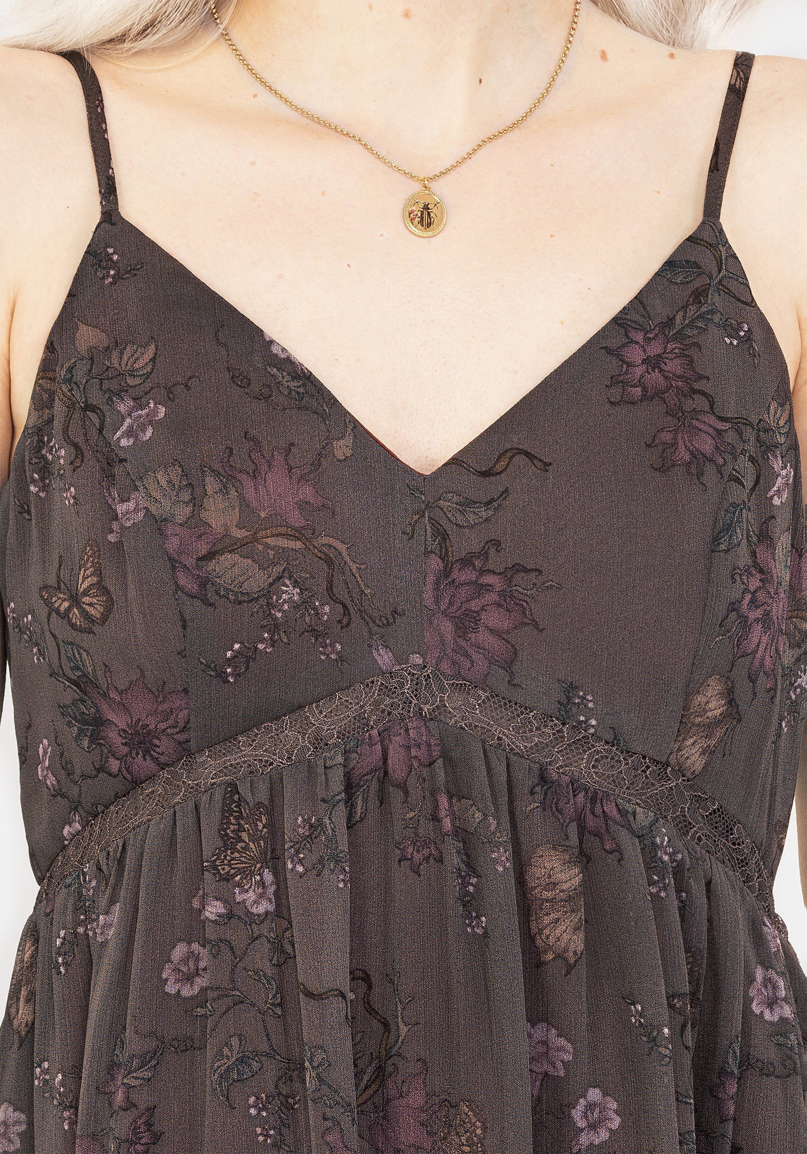 - Brown Floral Lace Insert Cami Midaxi Dress