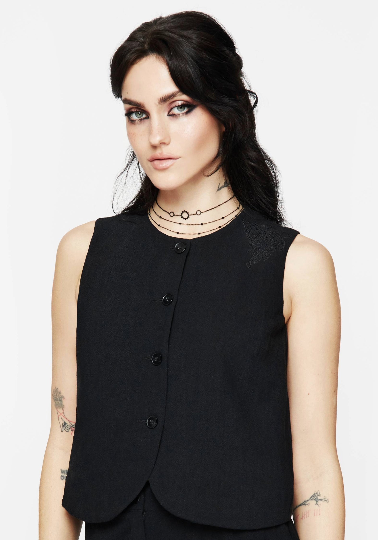 Aya Embroidered Linen Blend Button Front Waistcoat