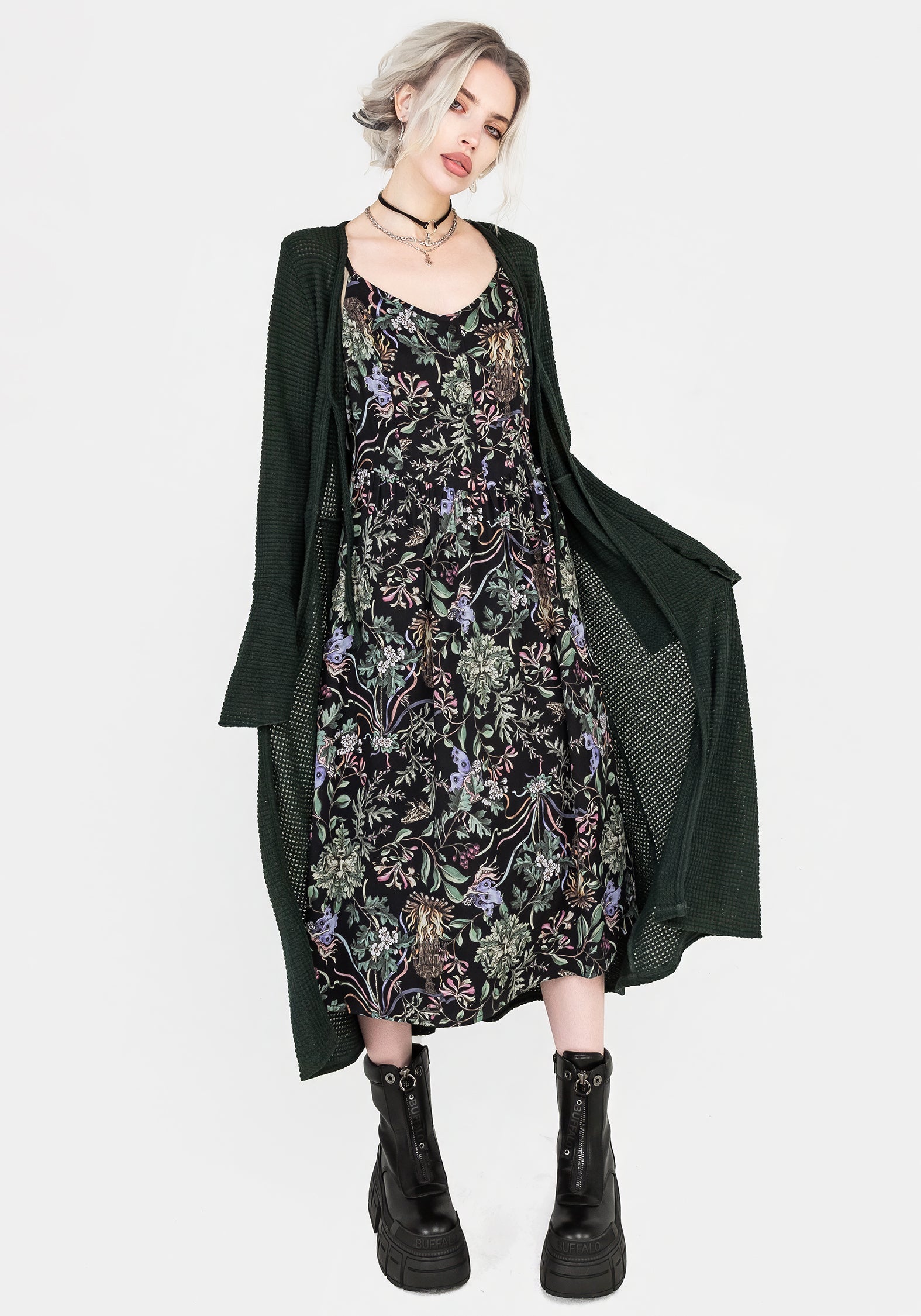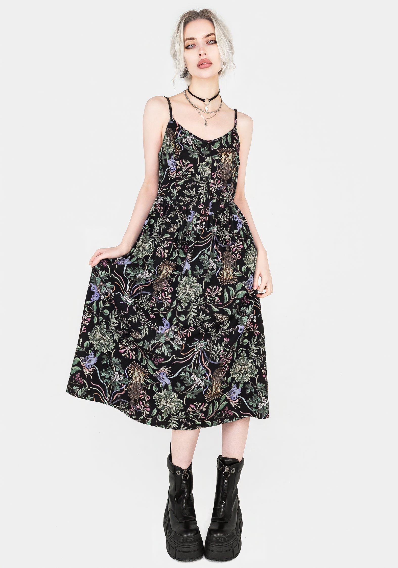 - Bespoke floral wicca print in greens, pinks & purples features key symbolism of May Day celebrations: May poles, wicker dollies, the Green Man & summer fae!