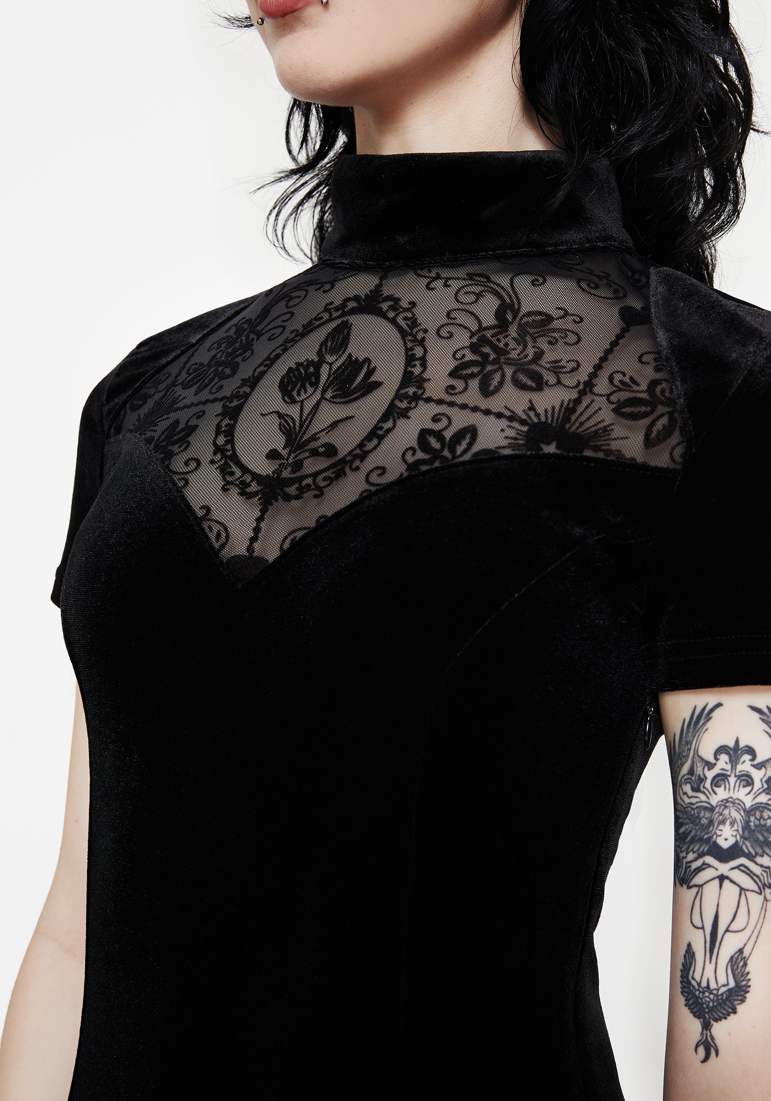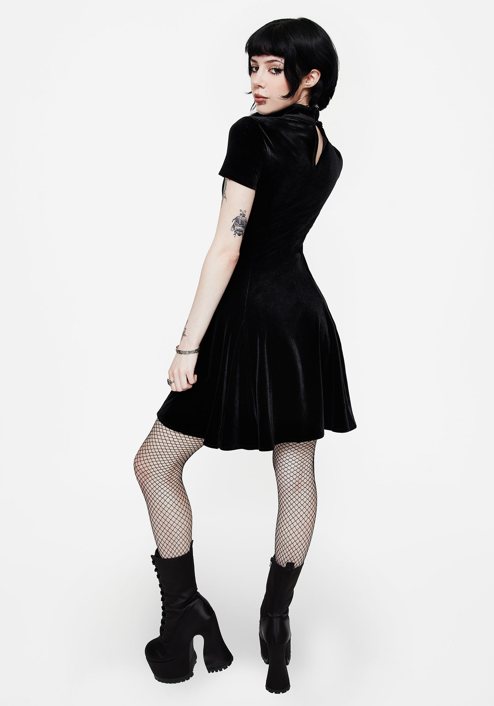 Cameo High Neck Flocked Mesh Insert Skater Mini Dress