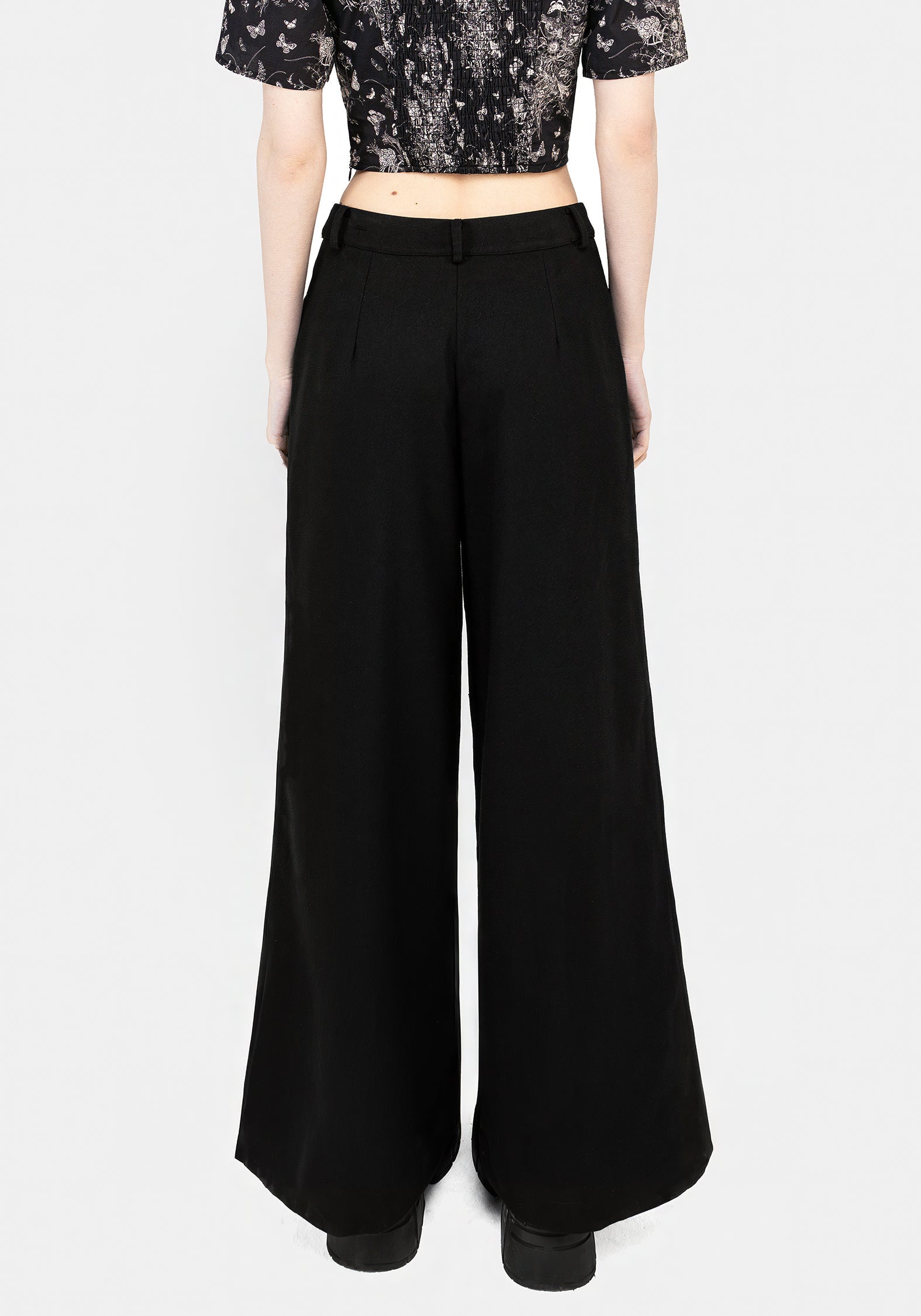 - Wide, roomy legs with front godet pleats to add extra volume for a flared effect