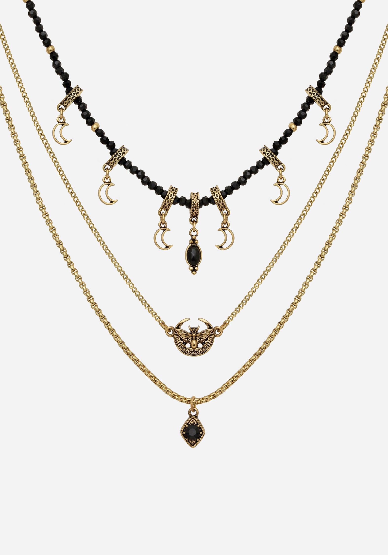 - Gold Moon & Moth Layered Necklace