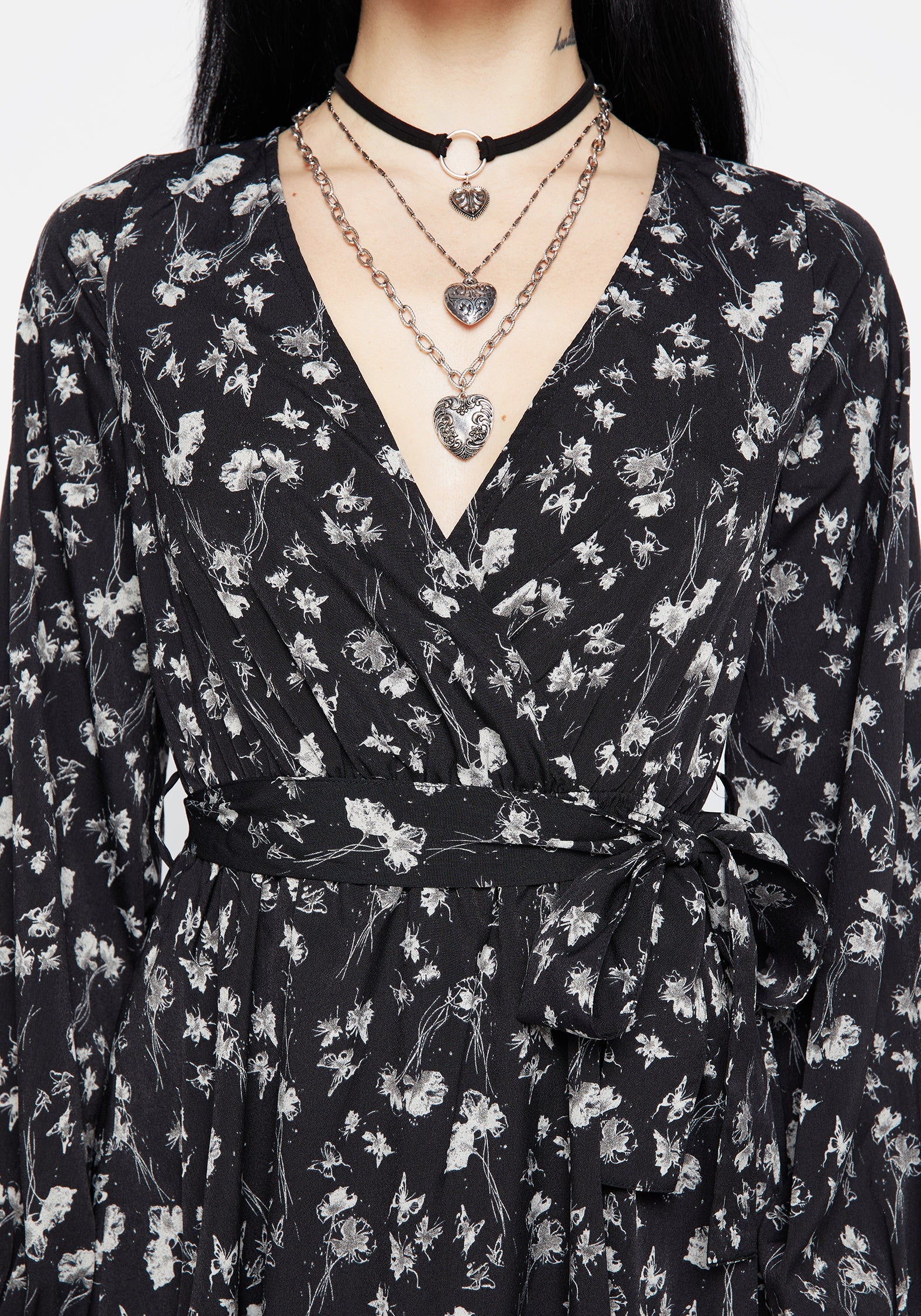 Claricia Long Sleeved Floral Faux Wrap Mini Dress
