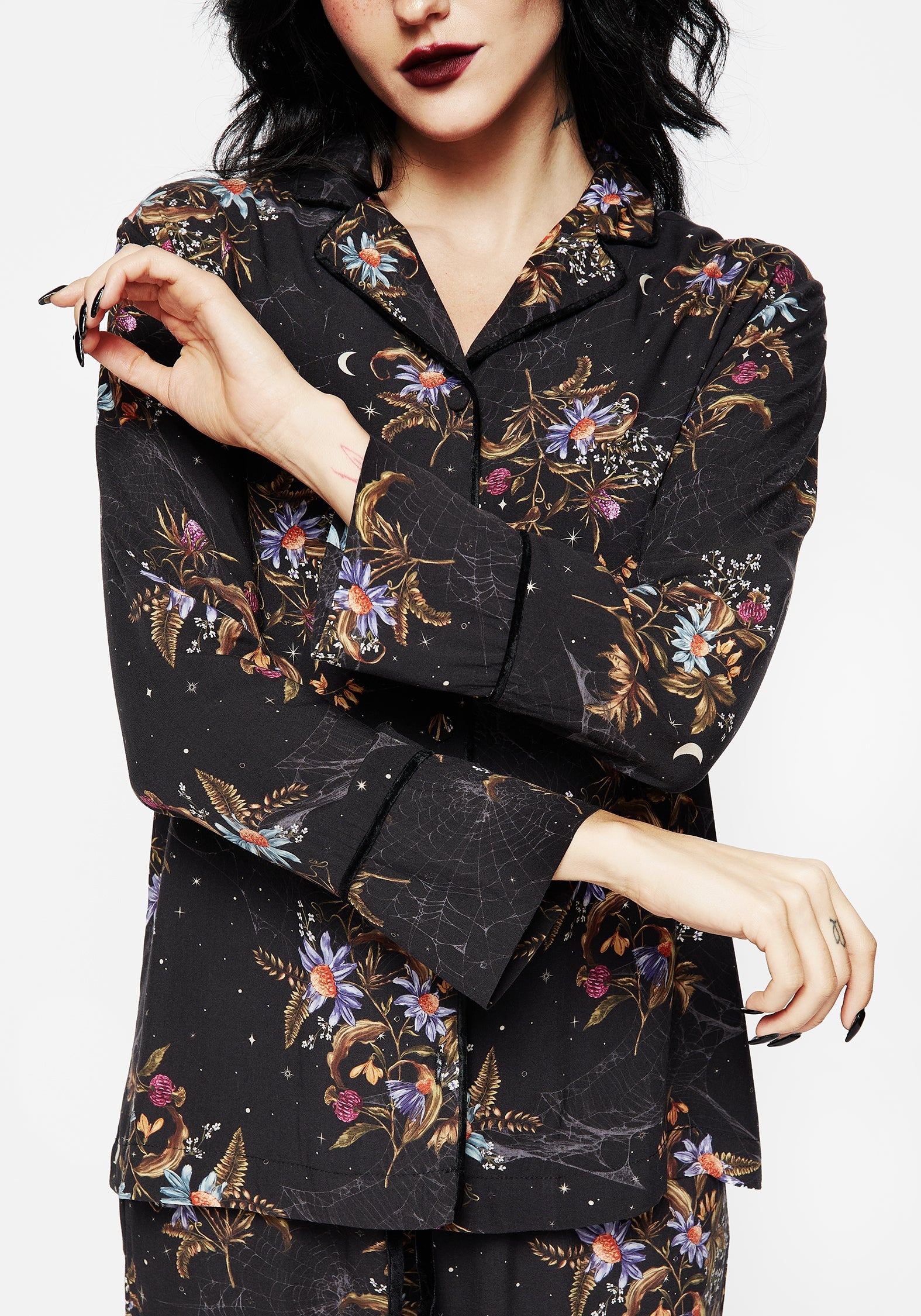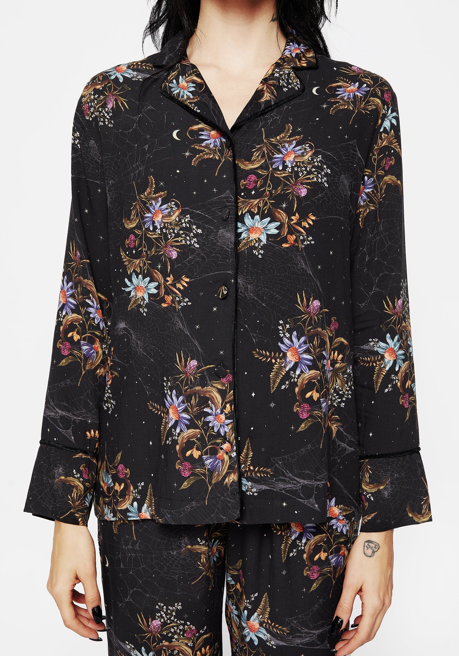 Cleome Floral Spiderweb Button Up Pyjama Top