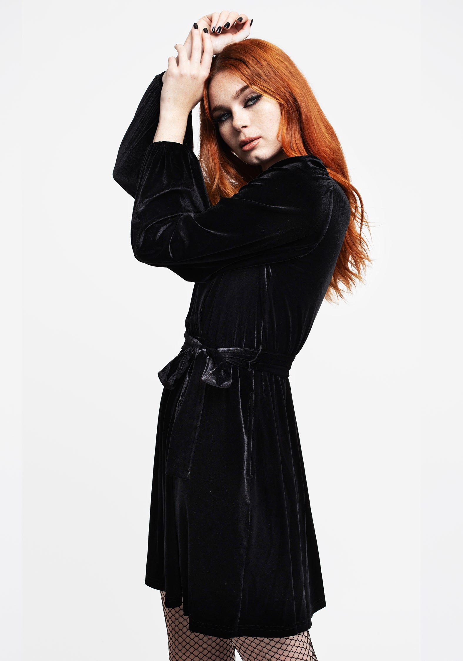 - Concealed side zipper for easy dressing & a belt to cinch waist