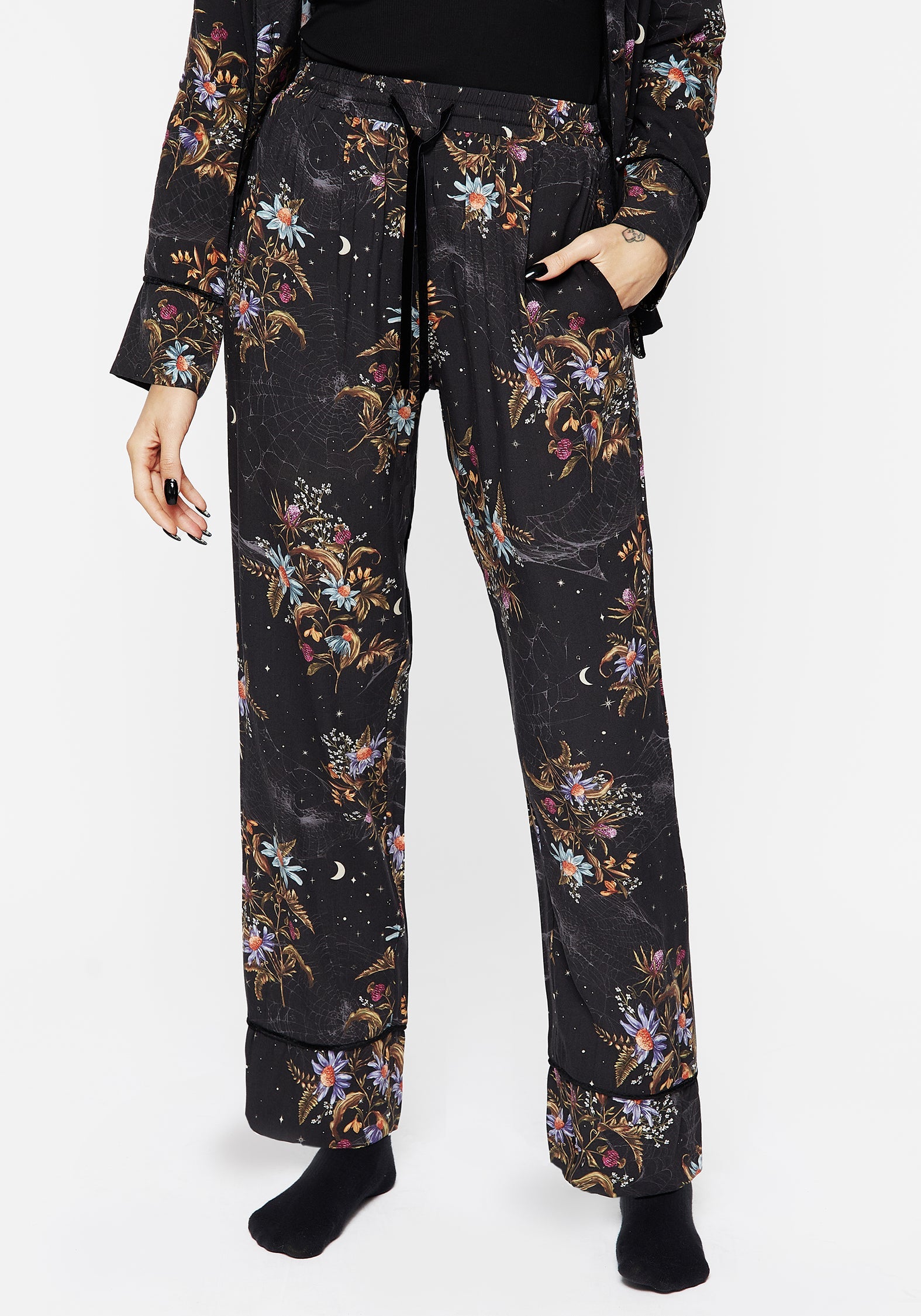 - Black floral spider print pyjama bottoms