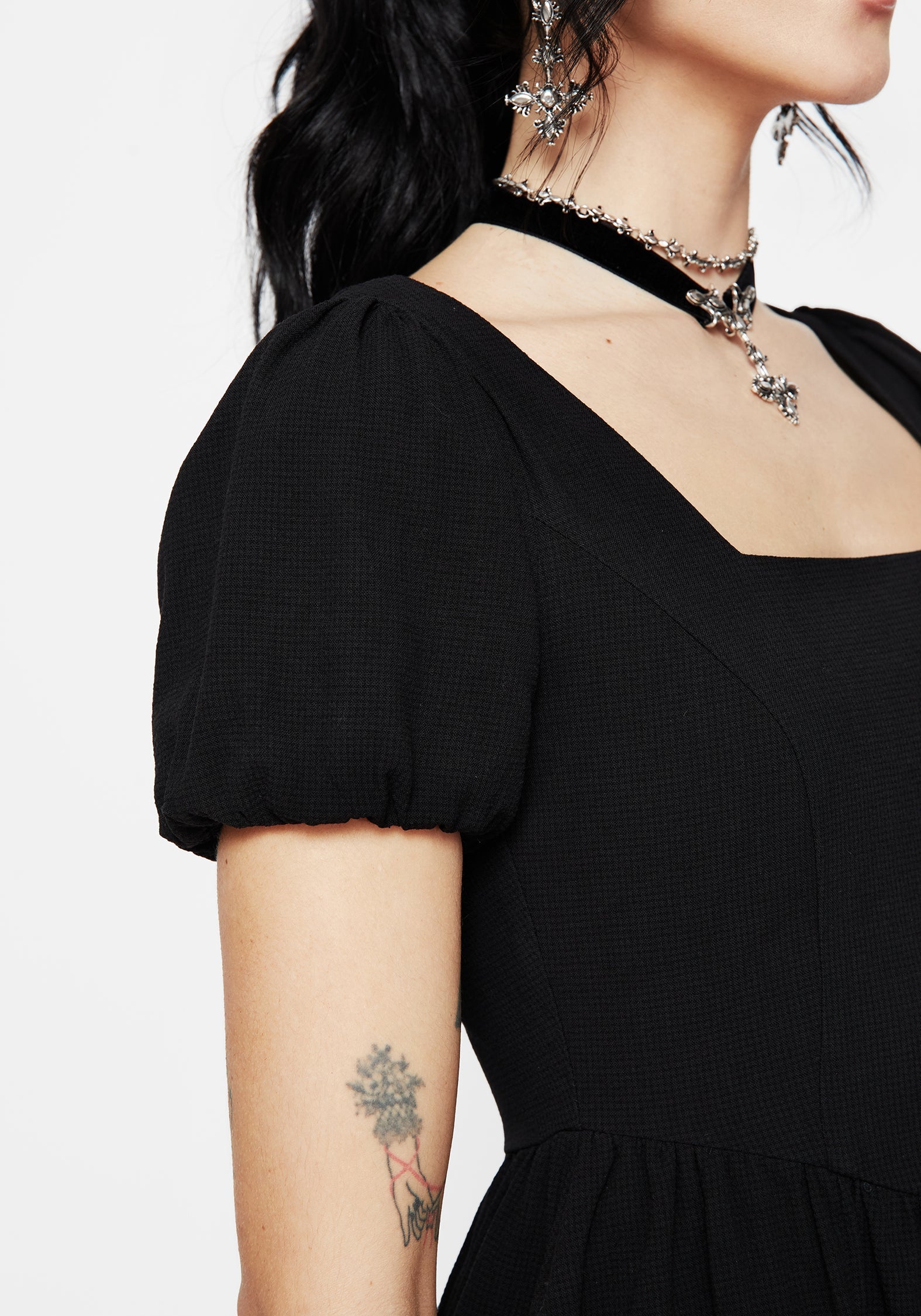 Copia Moth Embroidered Cotton Puff Sleeve Split Skirt Midi Dress