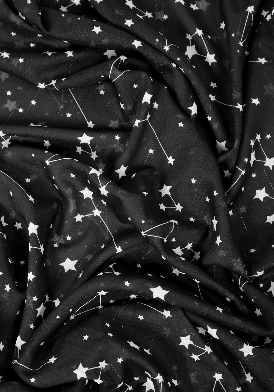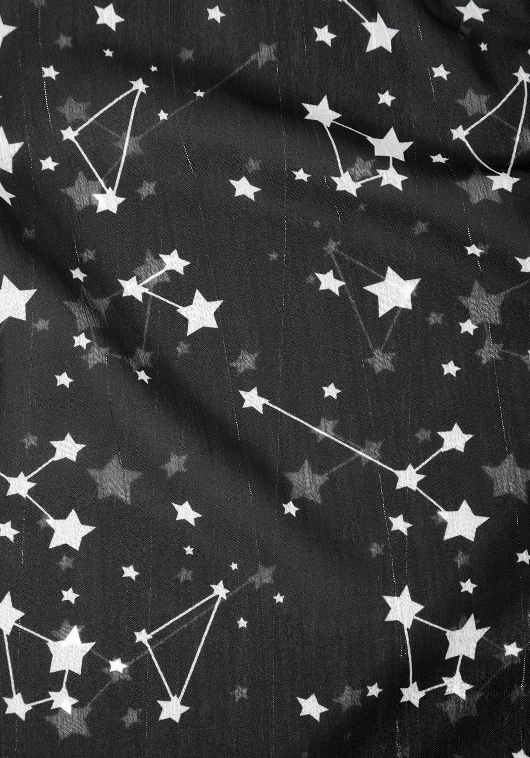 ★ Sheer black fabric with all-over star print in white