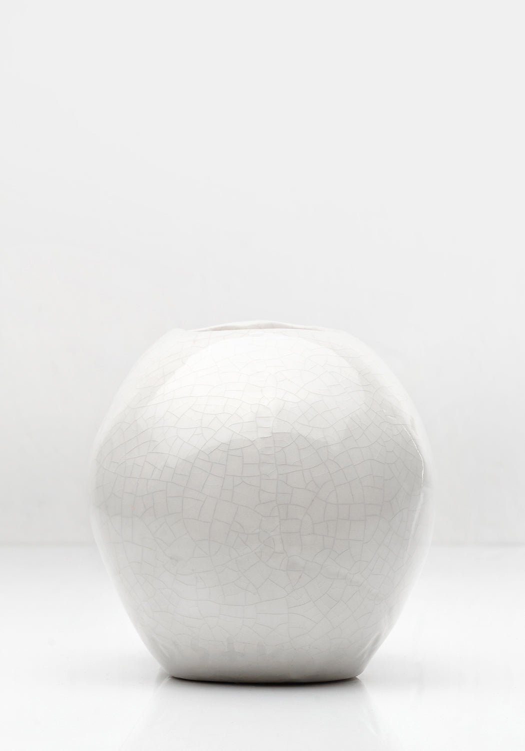 ☠ Ceramic crying skull candle holder with cracked white glaze
