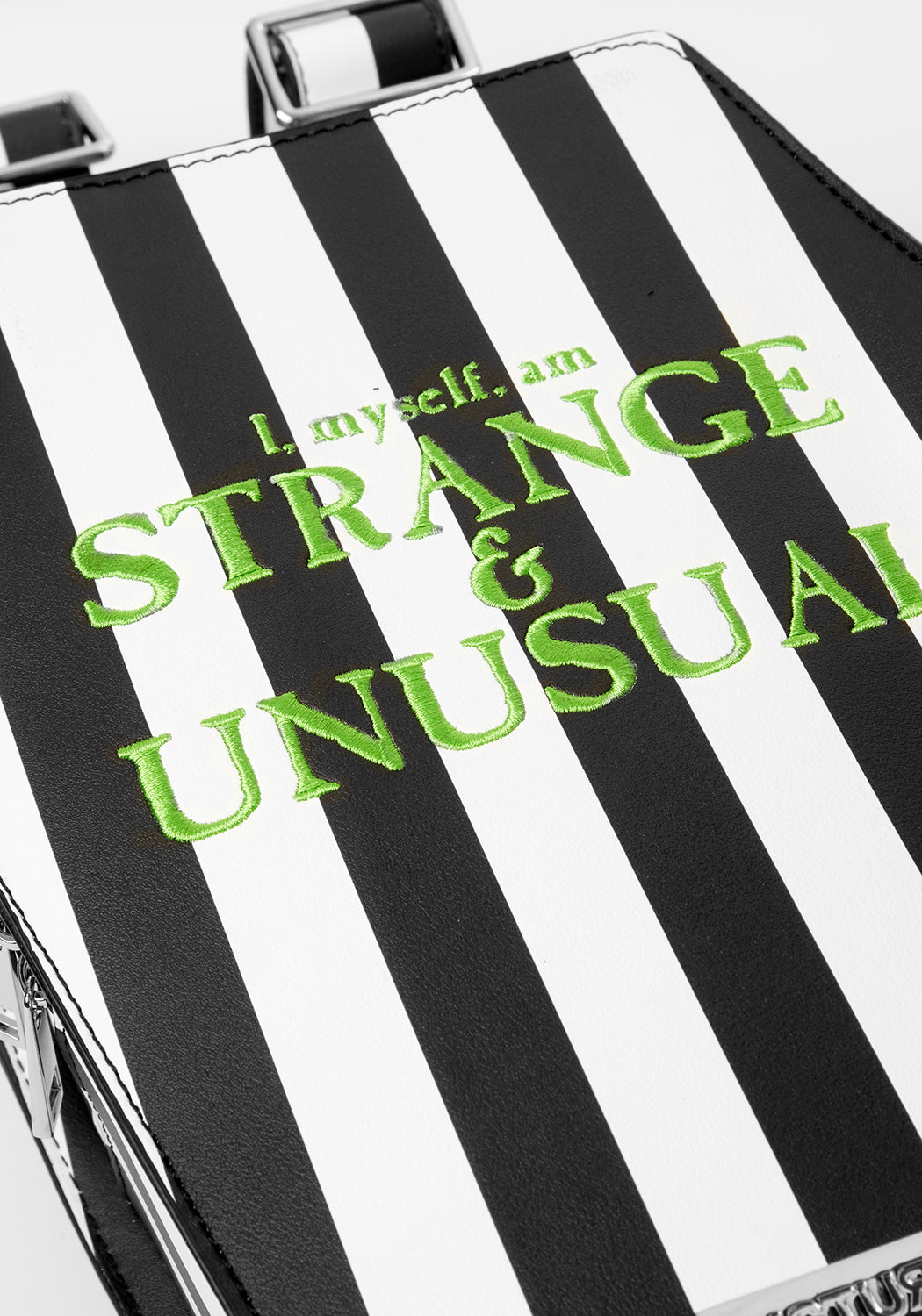 ✟ Green embroidery on front reads 'I, myself, am Strange & Unusual'