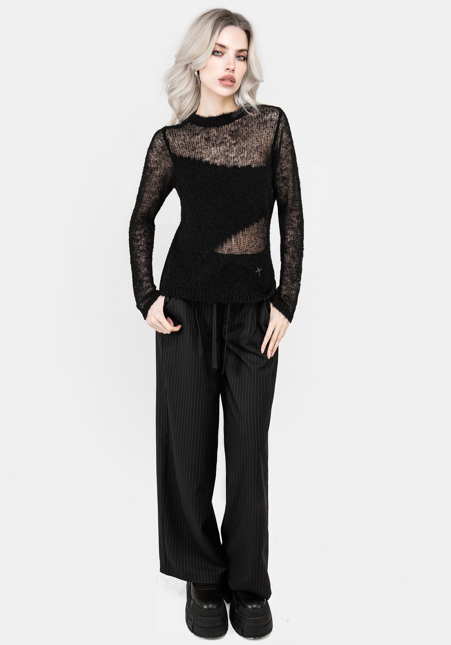 - Sheer & solid knit pattern for an untraditional effect