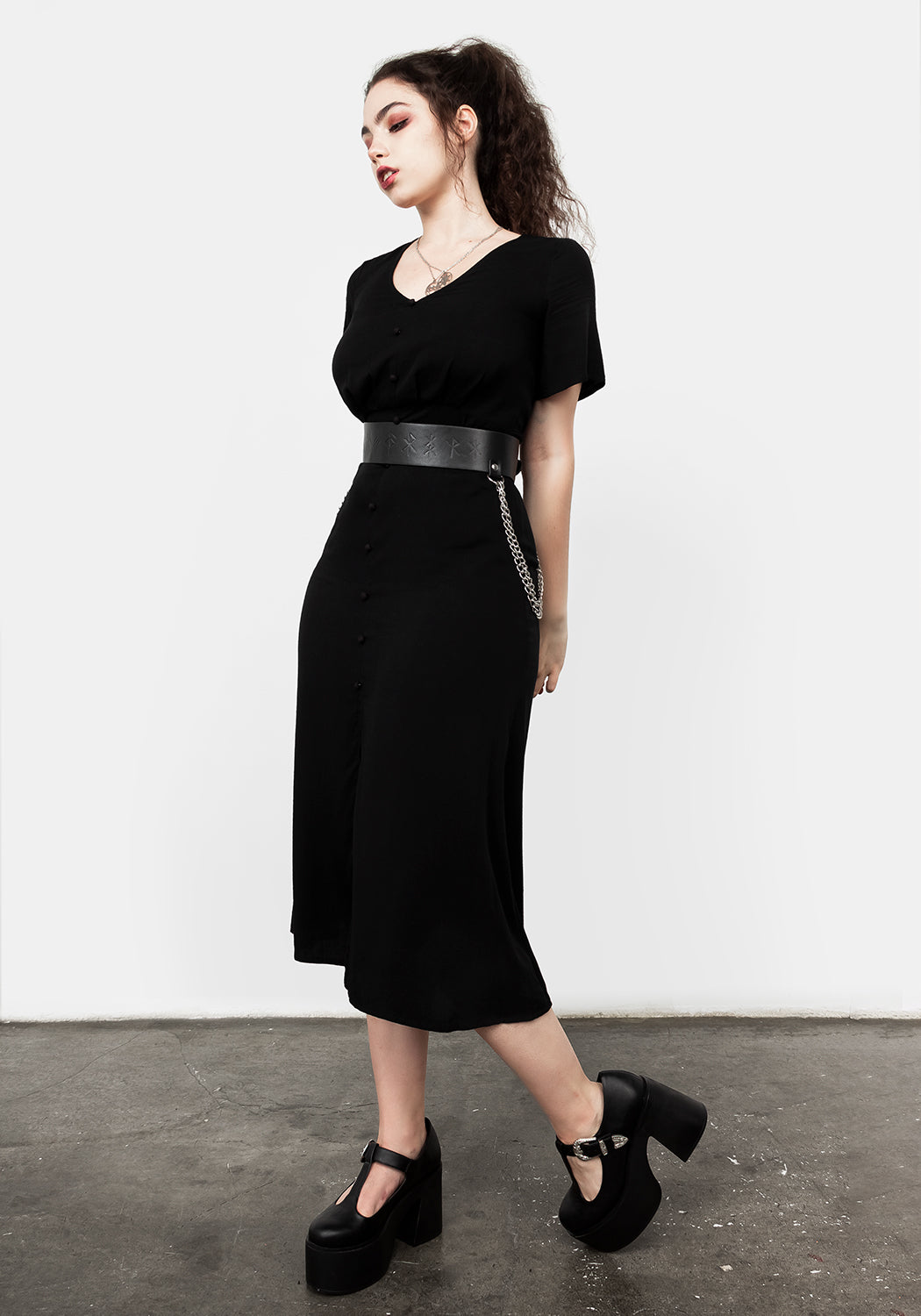 Black waist belt with chain details