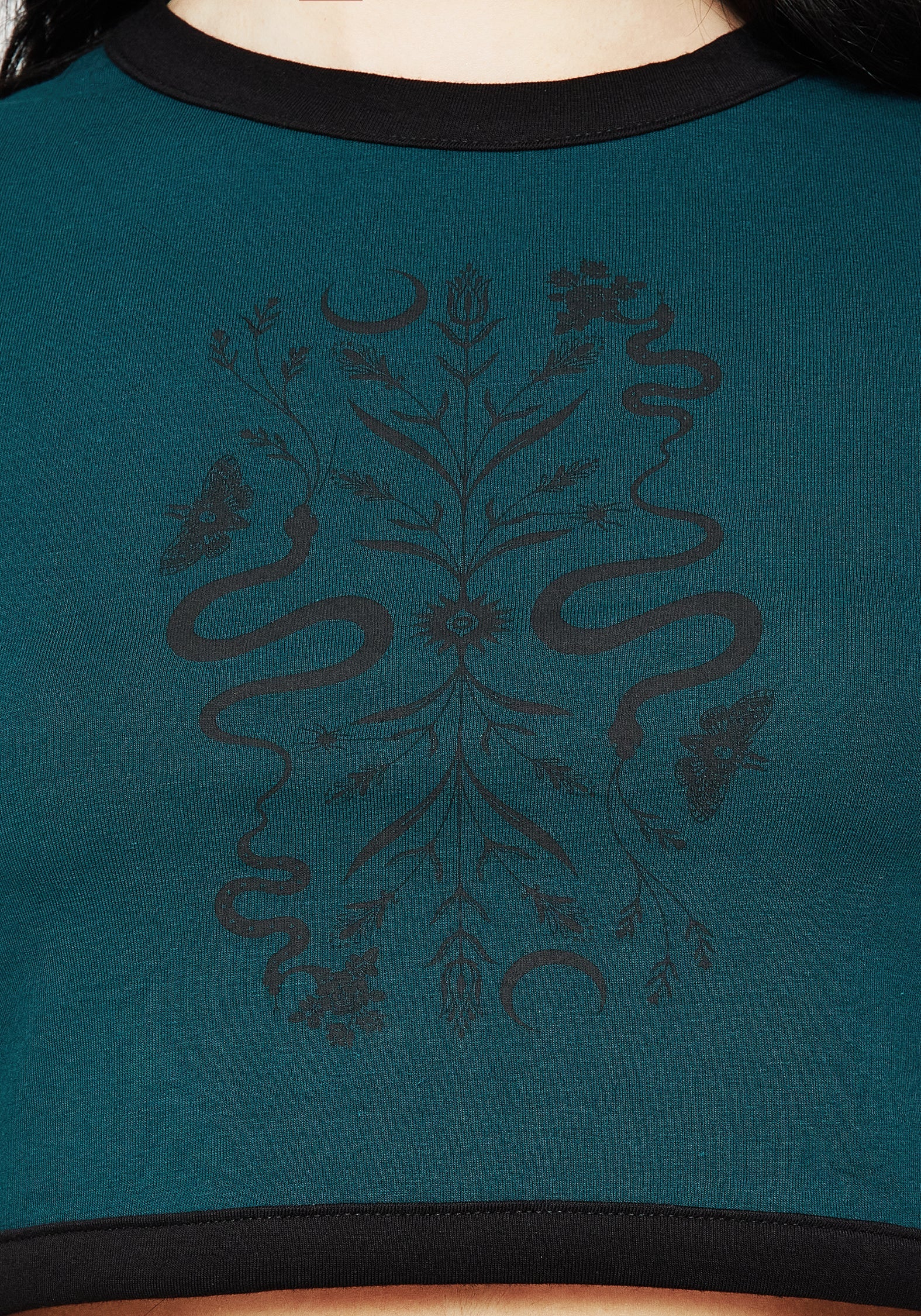 - Crew neckline & short sleeves with contrast ing black ribbing