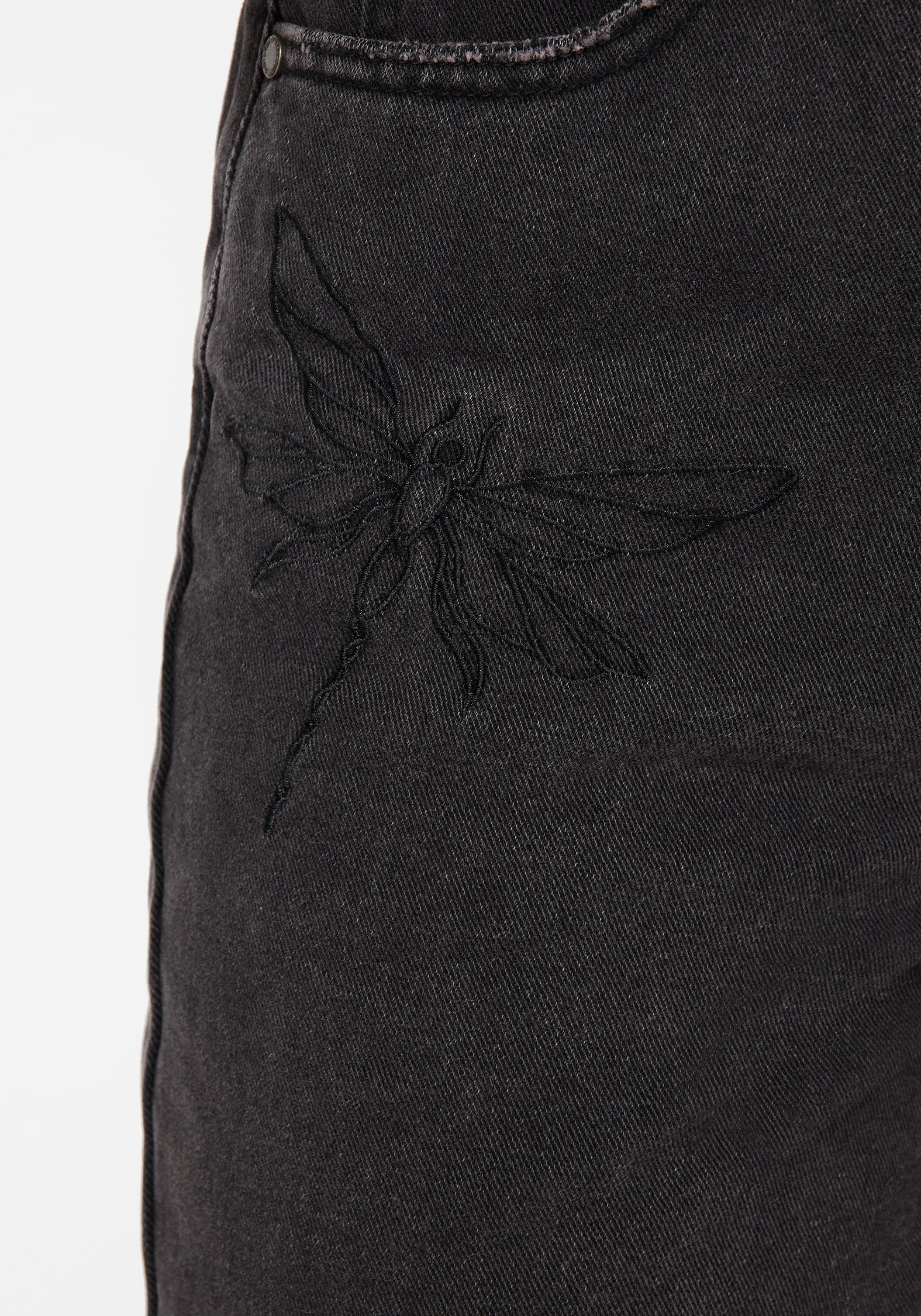 - Black Dragonfly Embroidered Denim Culotte Jeans