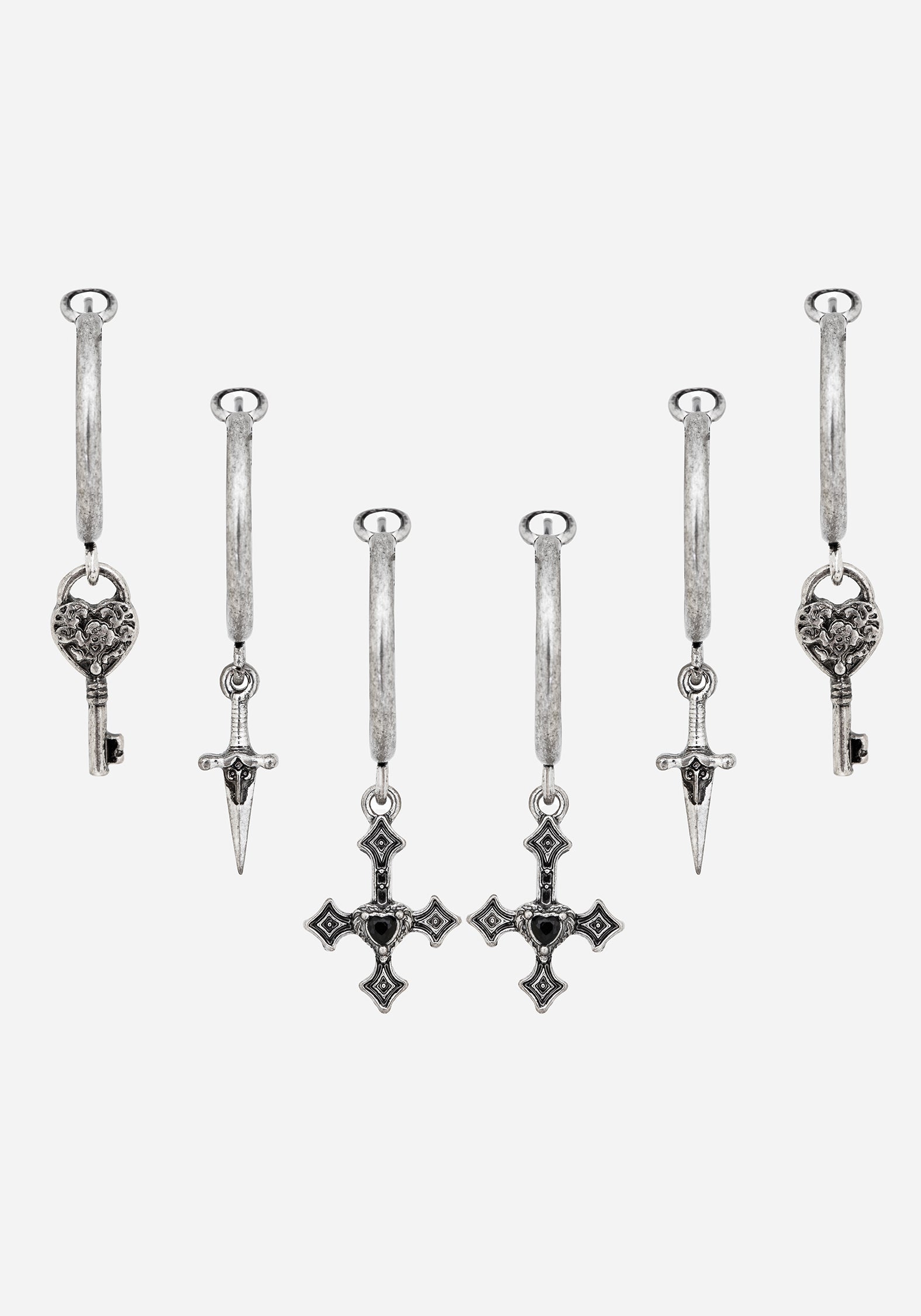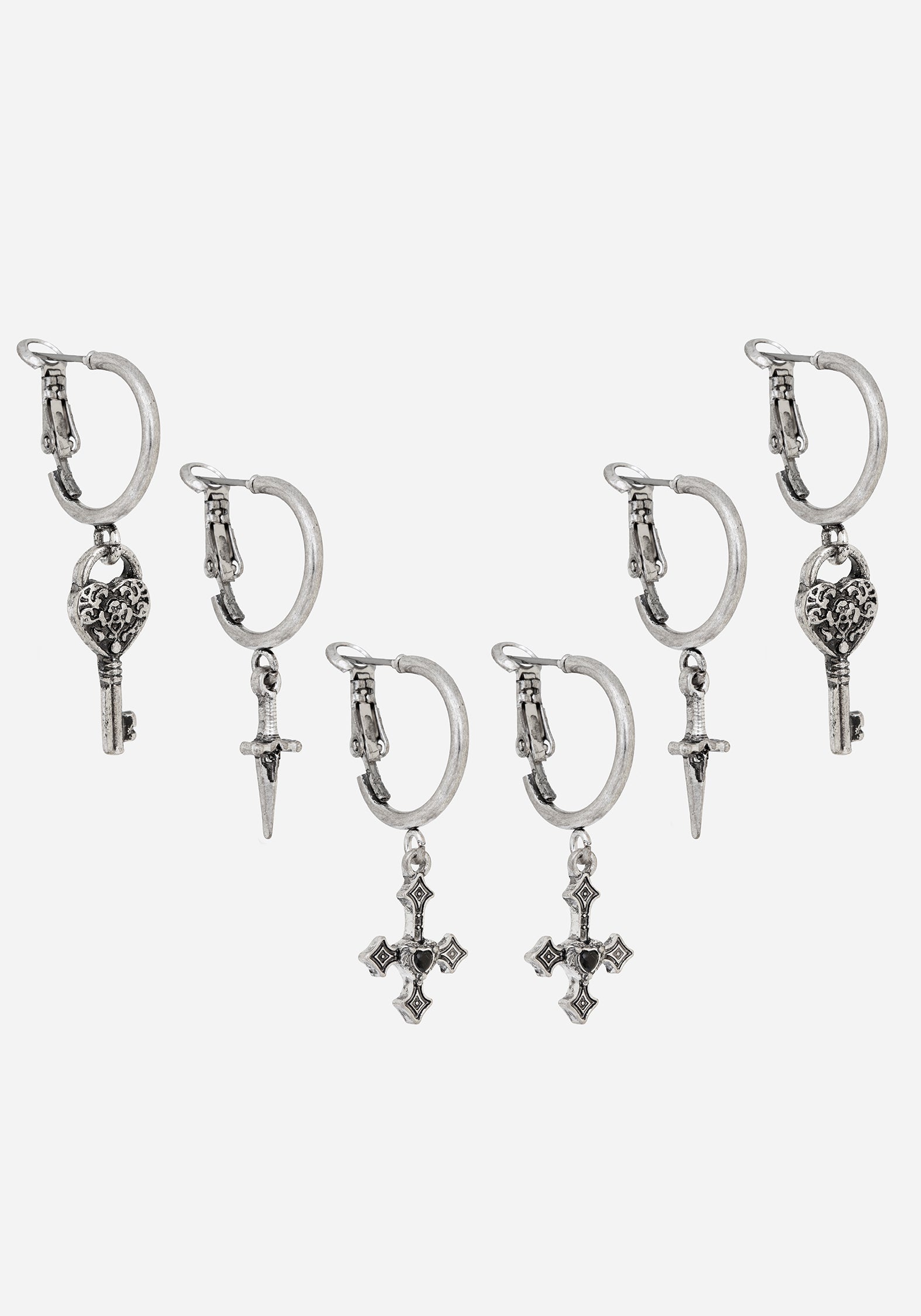 - Silver Swords, Hearts & Crosses Hoop Earring Set