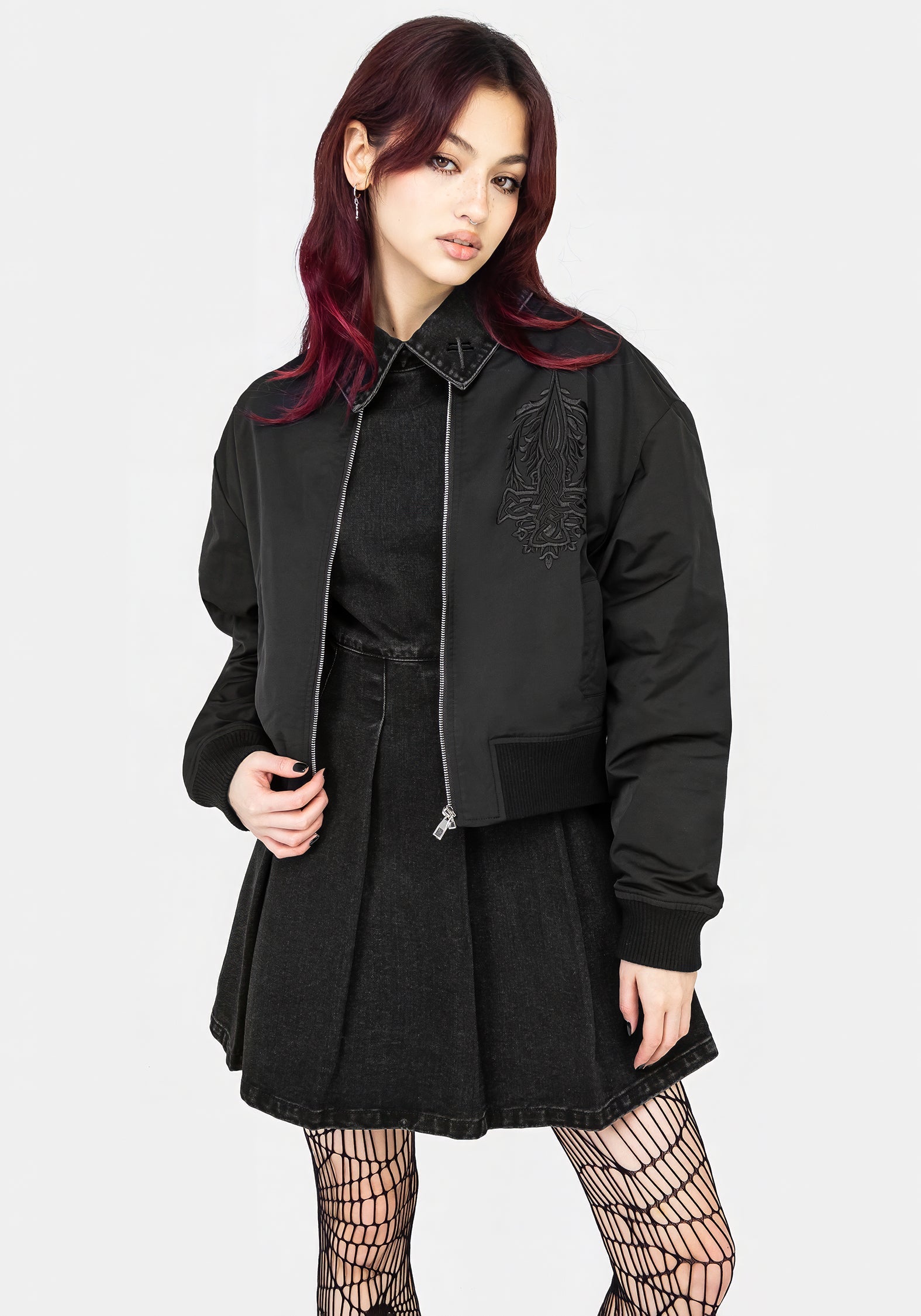 - Classic shirt collar & short sleeves in a non-classic material for a subversive twist
