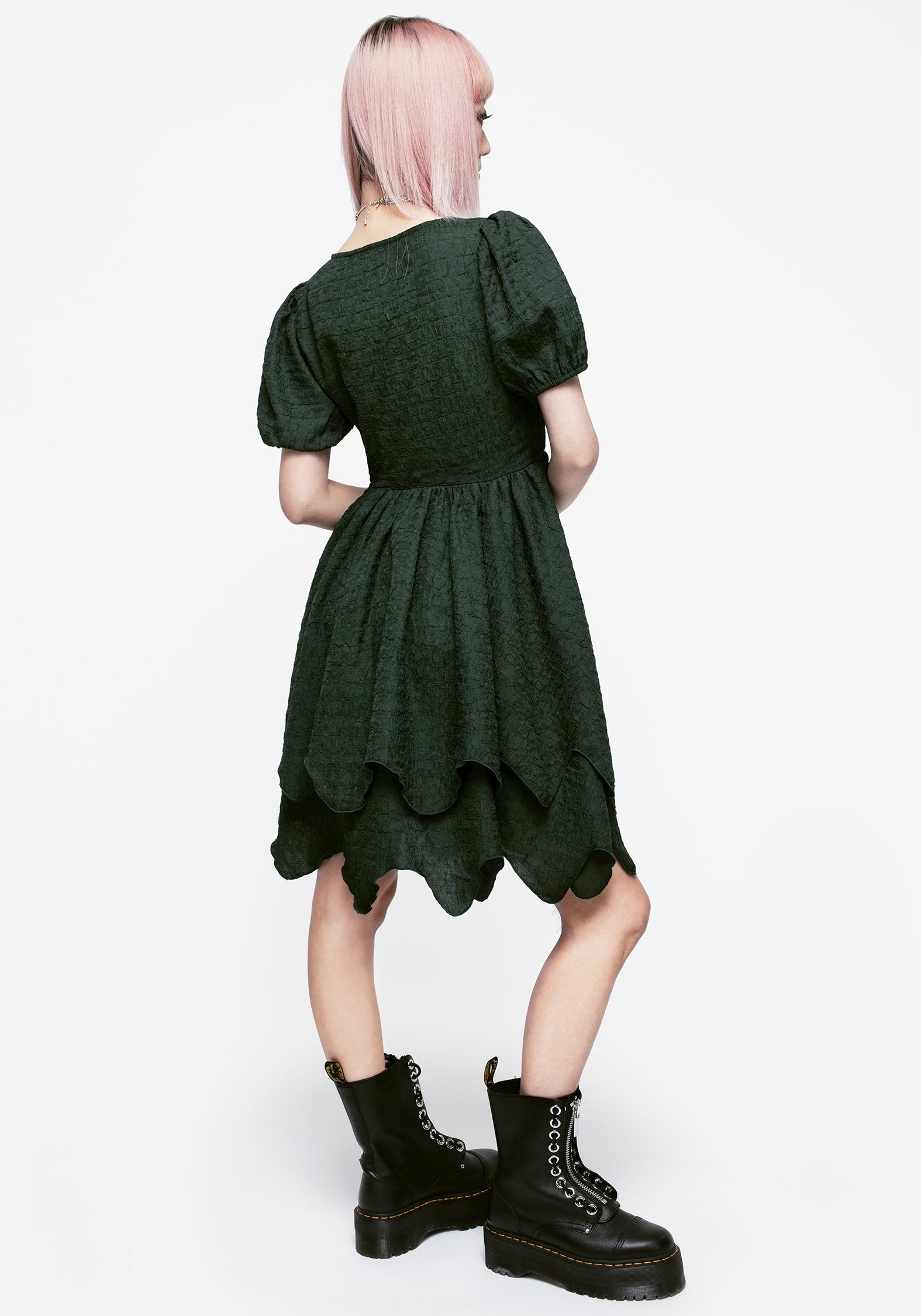 - Flattering fit ‘n’ flare shape with voluminous layered handkerchief hem mini skirt