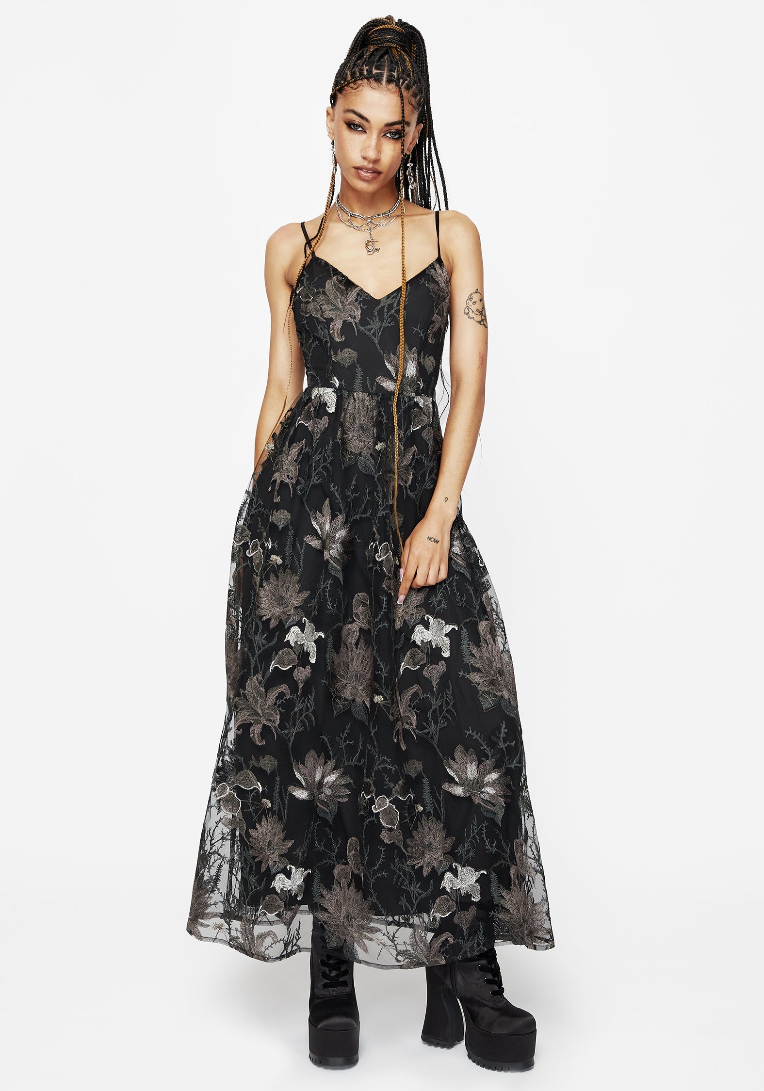 Estrid Embroidered Mesh Midaxi Cami Dress - Silver