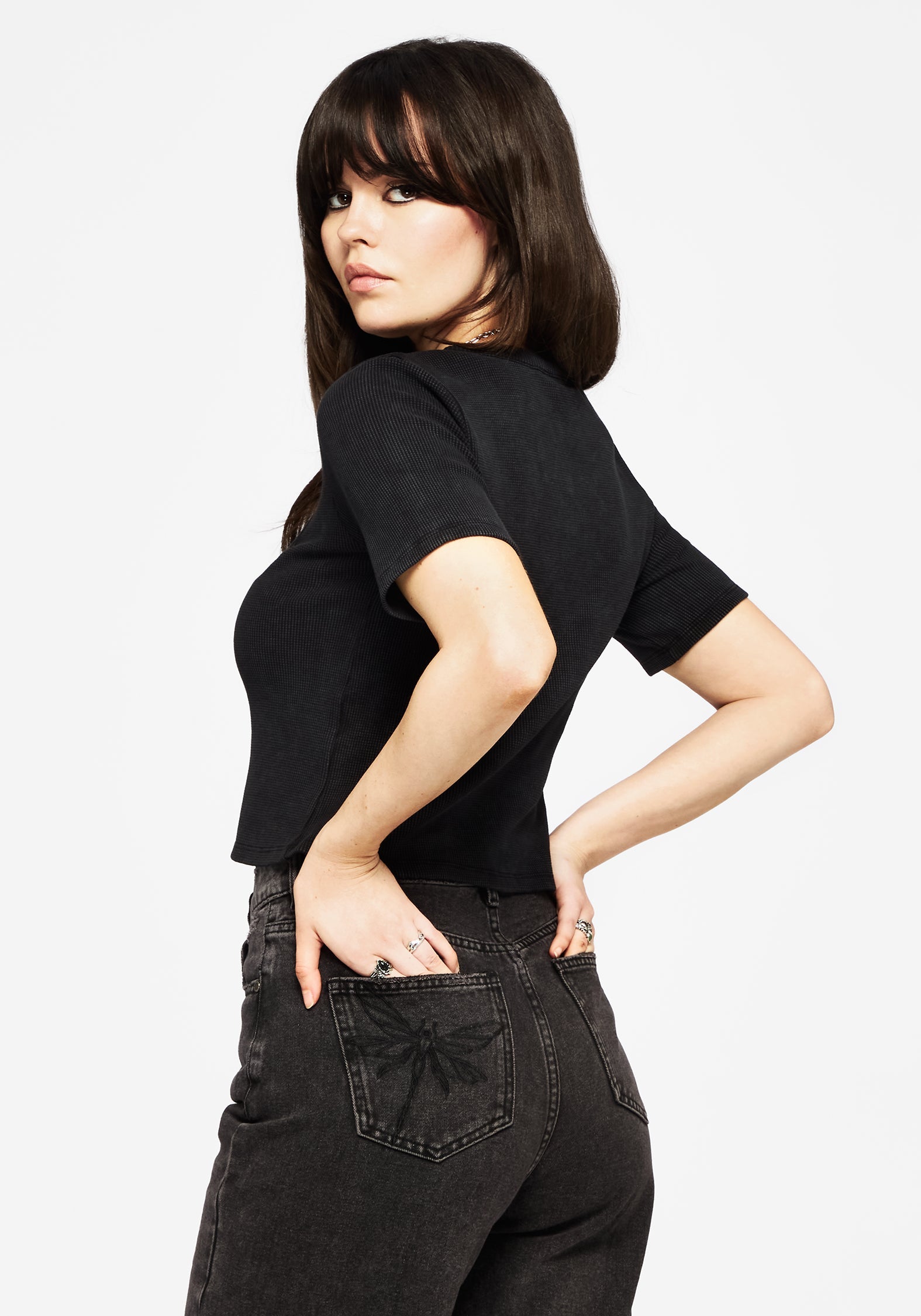 Faye Cotton-Blend Floral Embroidered Waffle Button Up Top