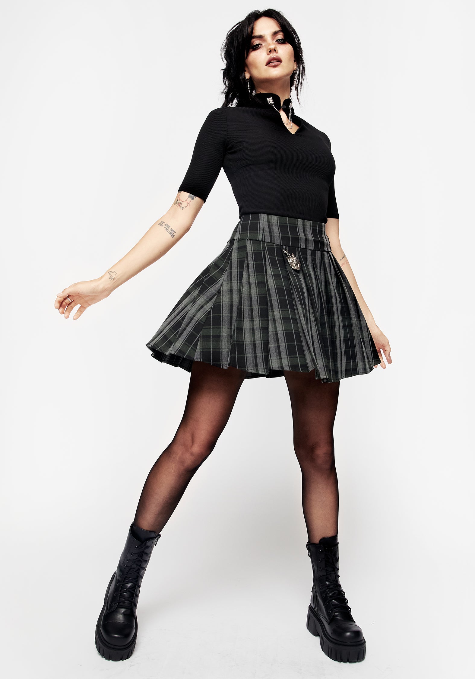 - Mid-rise fit with a flat waistband & pleated mini-length skirt