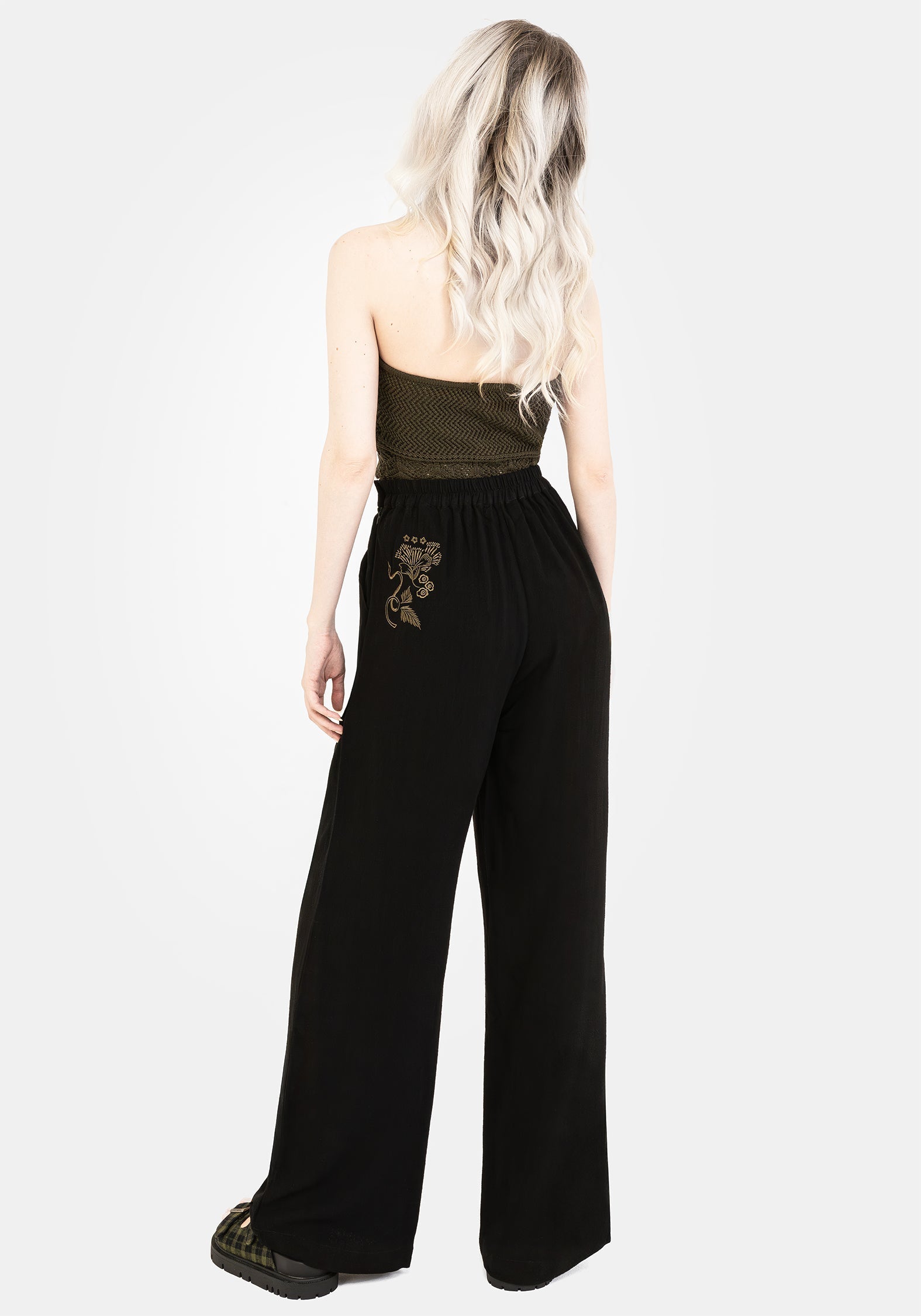 - Black Wide Leg Embroidered Trousers