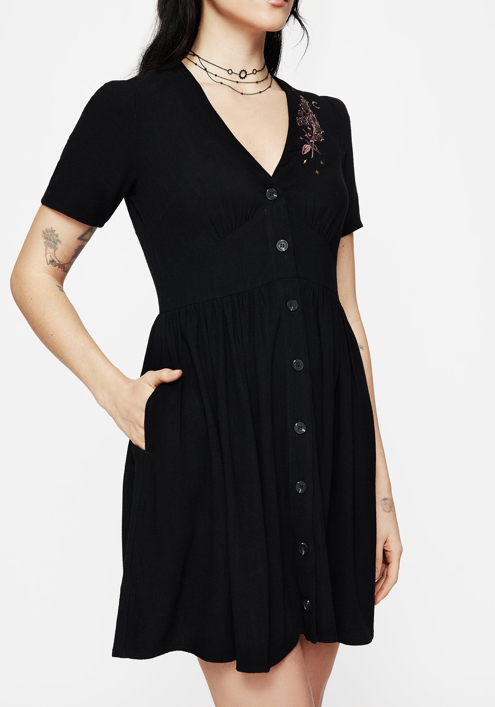 - Black V-Neck Button Up Mini Dress