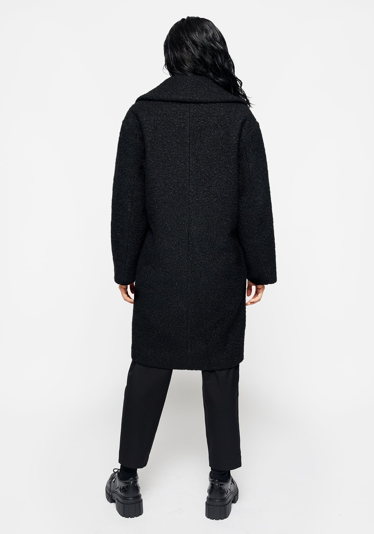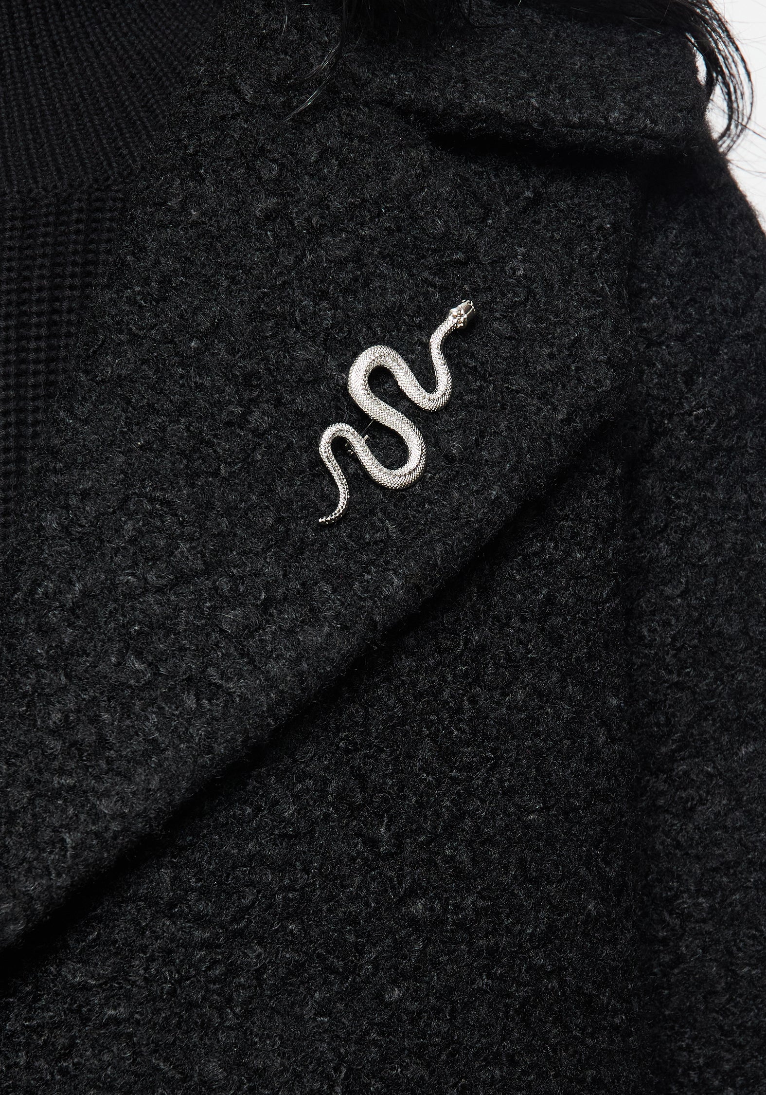 Gorgon Bouclé Oversized Coat with Snake Brooch - Black