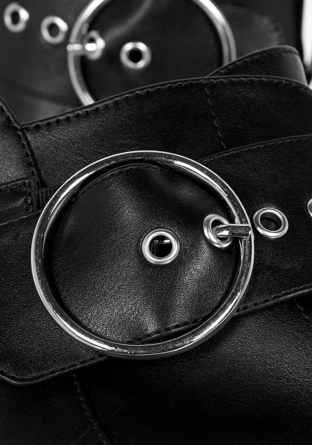 ❦ Large circular buckle finishes tough-luxe look