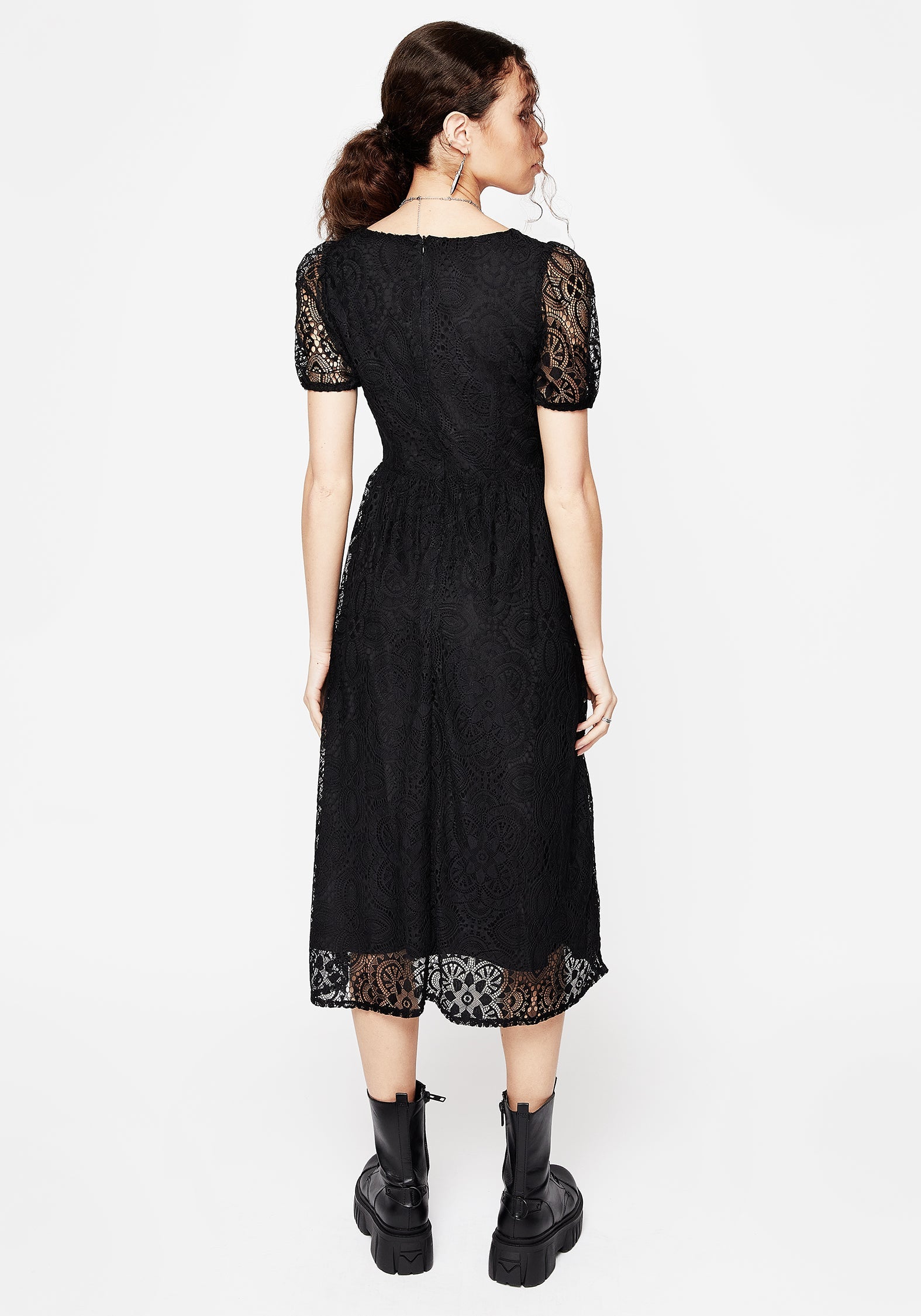 - Squared neckline adorned with non-functional buttons & short sheer puff sleeves