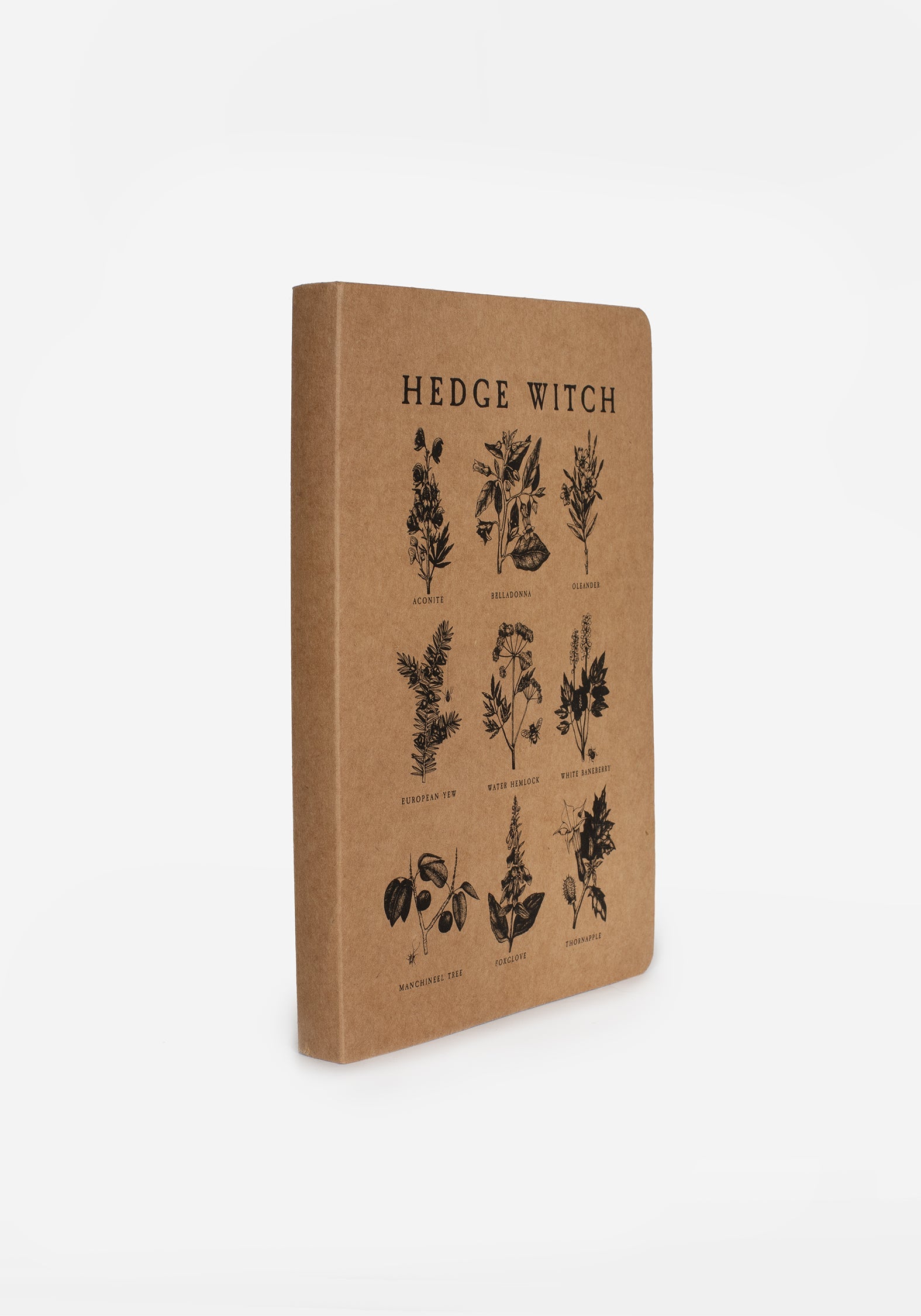 - Earthy brown card cover with our black Hedge Witch print on front cover & branded logo on back
